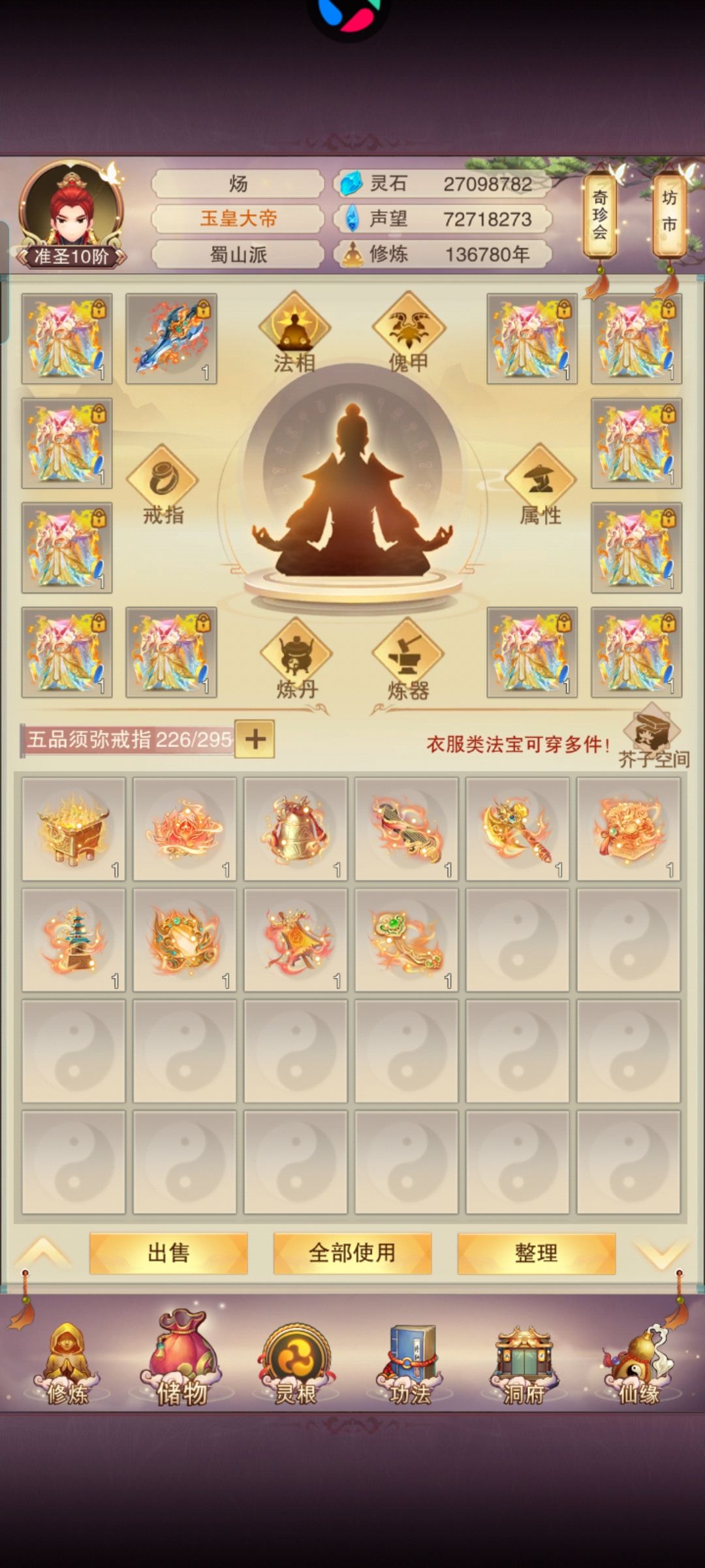 接着拿齐心的攻略水论坛[表情_斜眼笑] 这玩意儿没啥说的。 众所周知挂阵法可以卡特性, 挂上了只要中间不断能一直挂(不用在乎门派的阵法等级上限) 隐世门派需要在轮回殿用业力换信物进 轮回殿需要境界到达地仙并且通关冥界