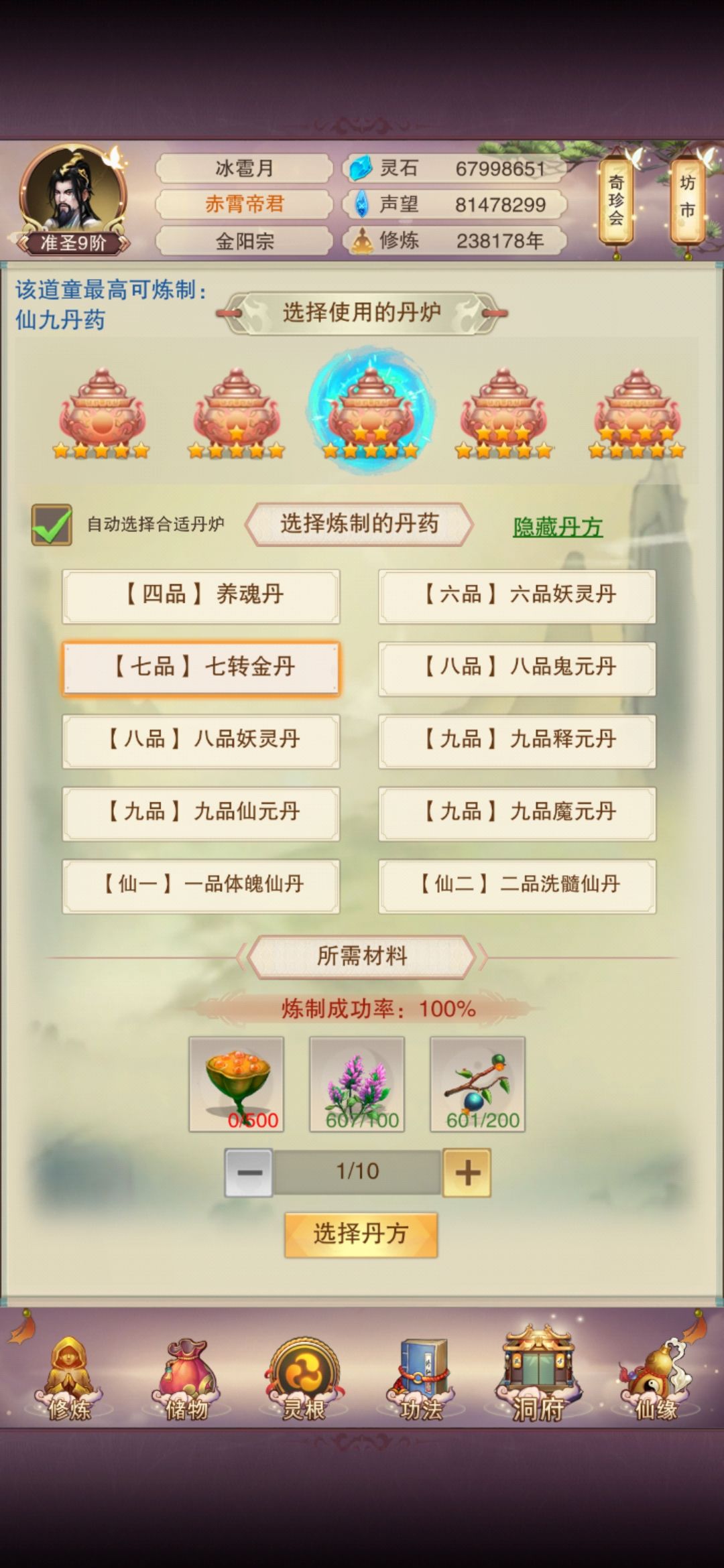 接着拿齐心的攻略水论坛[表情_斜眼笑] 这玩意儿没啥说的。 众所周知挂阵法可以卡特性, 挂上了只要中间不断能一直挂(不用在乎门派的阵法等级上限) 隐世门派需要在轮回殿用业力换信物进 轮回殿需要境界到达地仙并且通关冥界