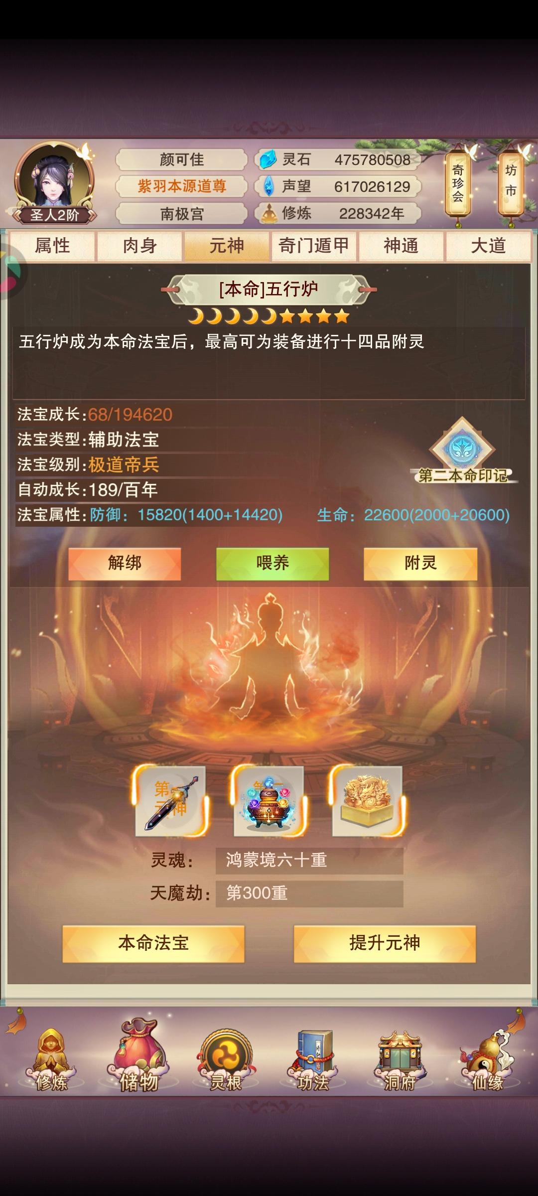 年份:4484年攻击:180704防御:405150血量:444533修为:平均50W一跳神界目前给1.2星攻防、秘术以及真伤真防学完。技能点:29个(由于刷门派不顺利,导致忘了有5个信物门派心法未学)炼体池预计明后天即可开启刚开启听课,目前听课两次,尚未遇到圣人洞府:肉87-聚灵139-洗髓71(还余约60万草铁未使用)