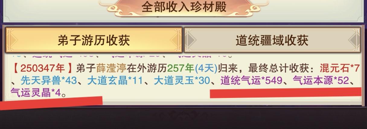 本人是九游服提前更新的,玩了几天有一点点猜测就是弟子每天只有三个人会进行有劳作剩下的人第二天刷新才会进行劳作如果猜测是正确的话,那么新进入道统的玩家,直接去任务堂,把两个游历任务一个机缘任务都给挂上去,剩下两个随机挂因为游历还有机缘任务都是要经历几天的,当你的弟子全部都在游历之后那么,可以在每天卡收益之前,召回三个弟子回来准备第二天听法 ,并且同时根据三个弟子的天赋进行对应的任务优先级。