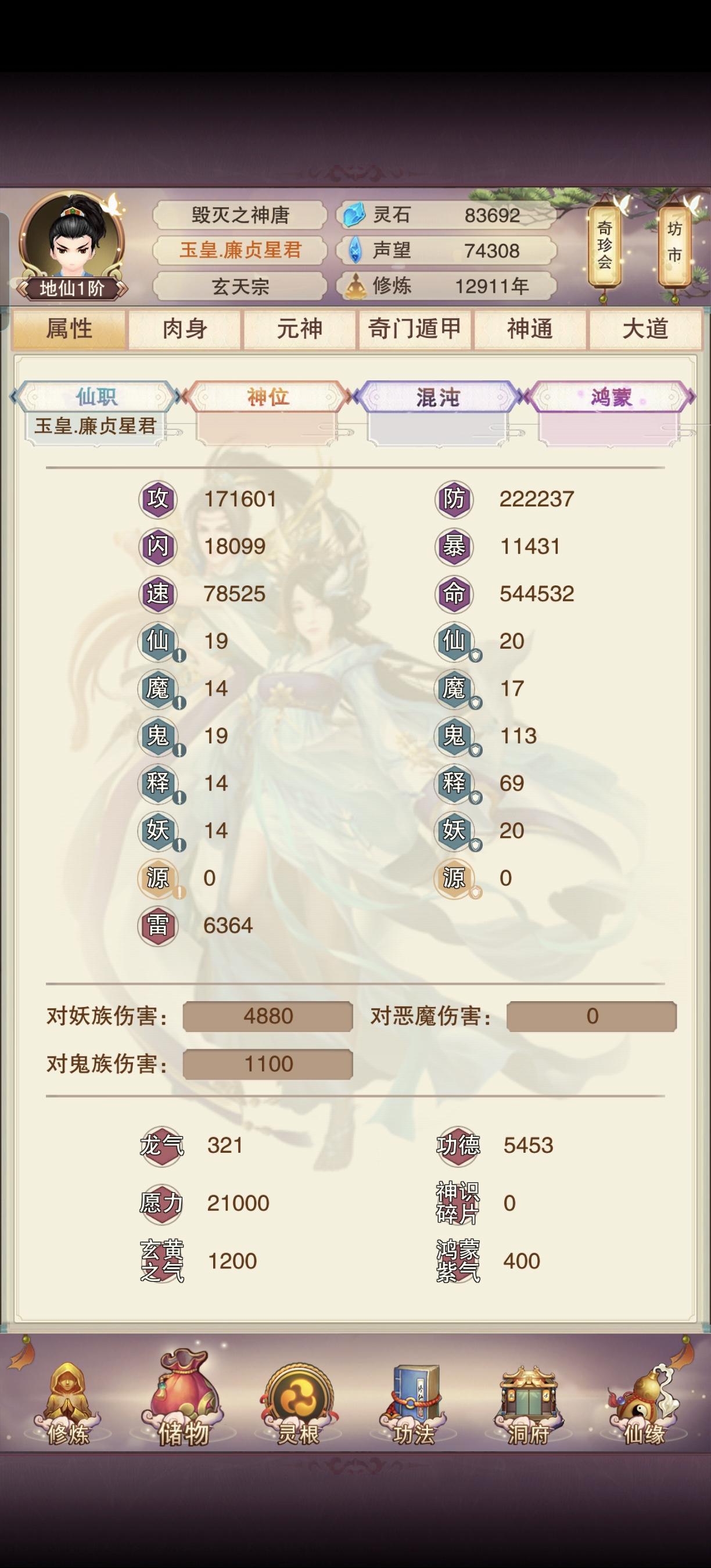 目前的目标是元旦左右攻击破800,春节前后防御900宠物43万左右,道果还有五系真防各10万可以提升,不过等宠物血脉全10毕业后才有材料提升了,目前我属性的话包括ios顶楼以下应该没比我更高的了吧
