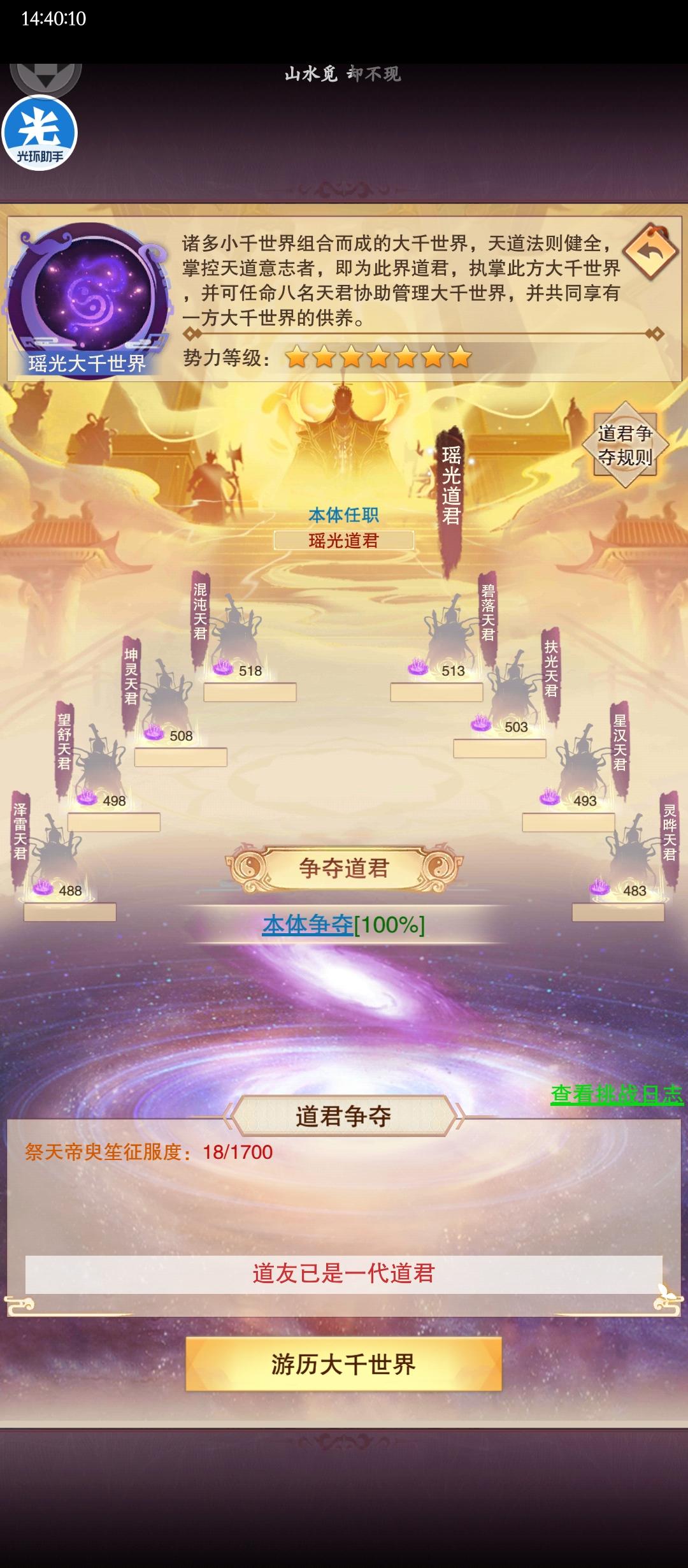 卷一·开天辟地篇【天下霸畅】号“玉皇帝君”,乃iOS修真界第一位登临凌霄殿、执掌天道的至尊。其创道圣宗,统御八荒,以“道童”之身游走六界,庇佑萌新,指点迷津。官方八区铭刻其名,海报封面常驻其威仪,堪称修真界不灭的启明星。【宿水】全服第一位证道圣人,魔帝与神霄帝君双冠加身,修为冠绝寰宇。传闻其为“鬼佬”化身,一念碎星辰,一指镇万古,至今仍是诸天修士仰望的巅峰。【阿狗棒棒哒】轮回