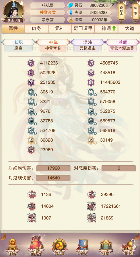 2716年记录修道未满三千载,遽登洞虚。然破境之速,快如星陨慢似岁移,望早臻至洞虚三阶入阵门修习奇巧。幸甚至哉,今晨观天象而罢伐接引之役,惜仙缘自断。然大道殊途,并非永绝强者之列。勉勤修不辍,以期同诸君早证混元,长生久视。