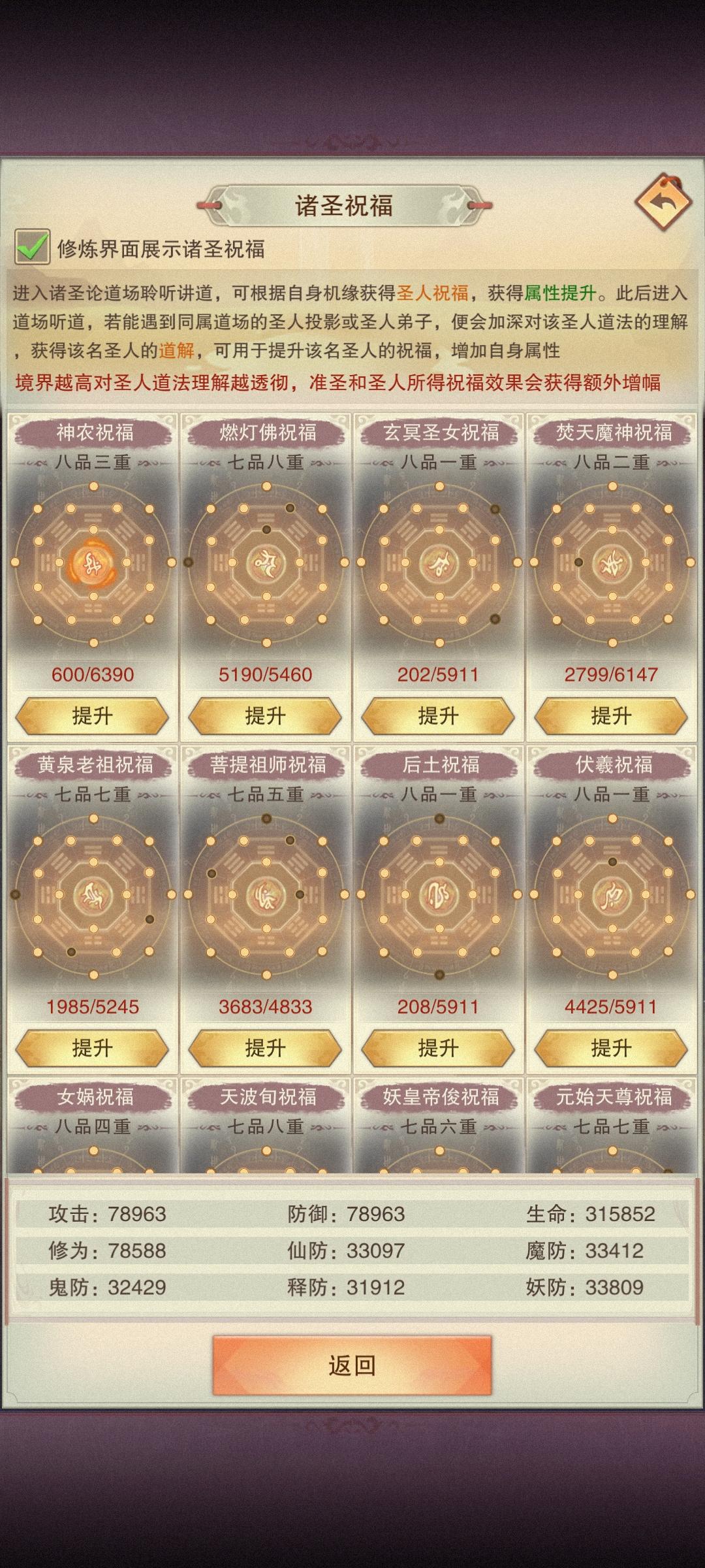 时隔2月(大概)防御属性破千万;上台感言:有一说一其实快坐化了,游戏看的少了关注的也少了唯一的乐趣就是在群里和道友们插科打诨吃吃瓜,如果没有昨天这个更新爆料那大概率,千万属性以后就坐化了。修为方面:彻底放弃修为(因为没用了),五转渡劫丹我都不买了,紫气留着(大用,根本不够用);属性方面:由于阿鬼的产能太低,使得我对游戏没有盼头(例如:夕阳游戏谁敢充钱)。所以氪金很早就已经停了。接下来目标是吃