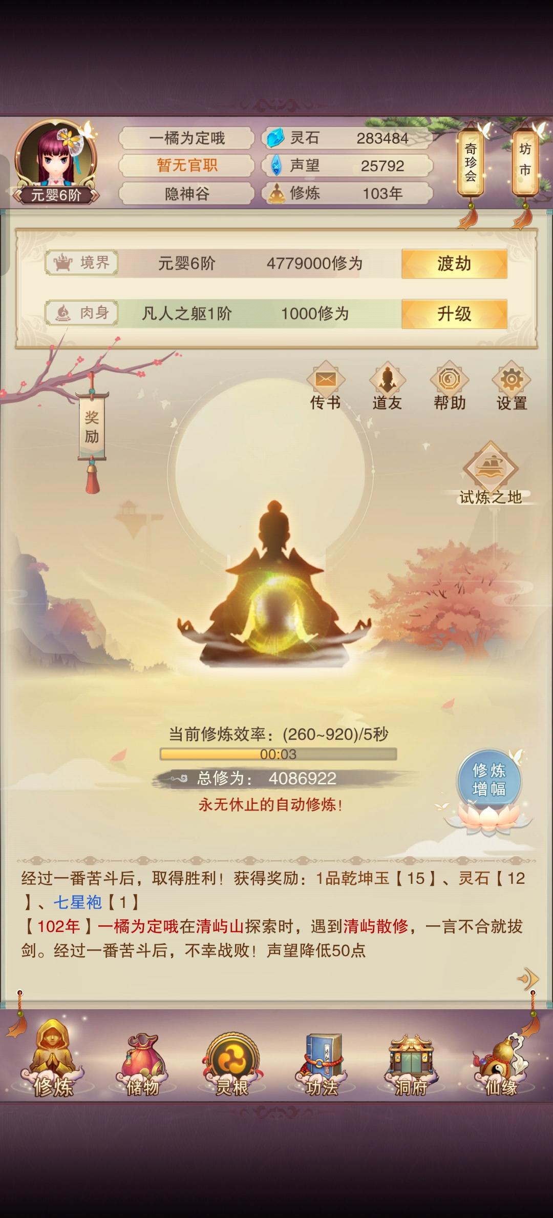 207区真的高手遍地走啊,由于我随缘进晚一个小时,比卡点进的慢一个境界几十万修为,好在区里还有高手,青云卡点进现在才元婴五,我的心里稍微平衡了一点,区里零氪这会儿应该最多元婴一,慢的金丹89。目前已知落地322流派的应该有10左右,算上青云+真诀可能二十几个或者更多,还有几个落地648,真正的氪佬还在冒头不知道本区有没。之所以选女号是看攻略后为了py大佬,不过我没预料到区里可能没有大佬2333