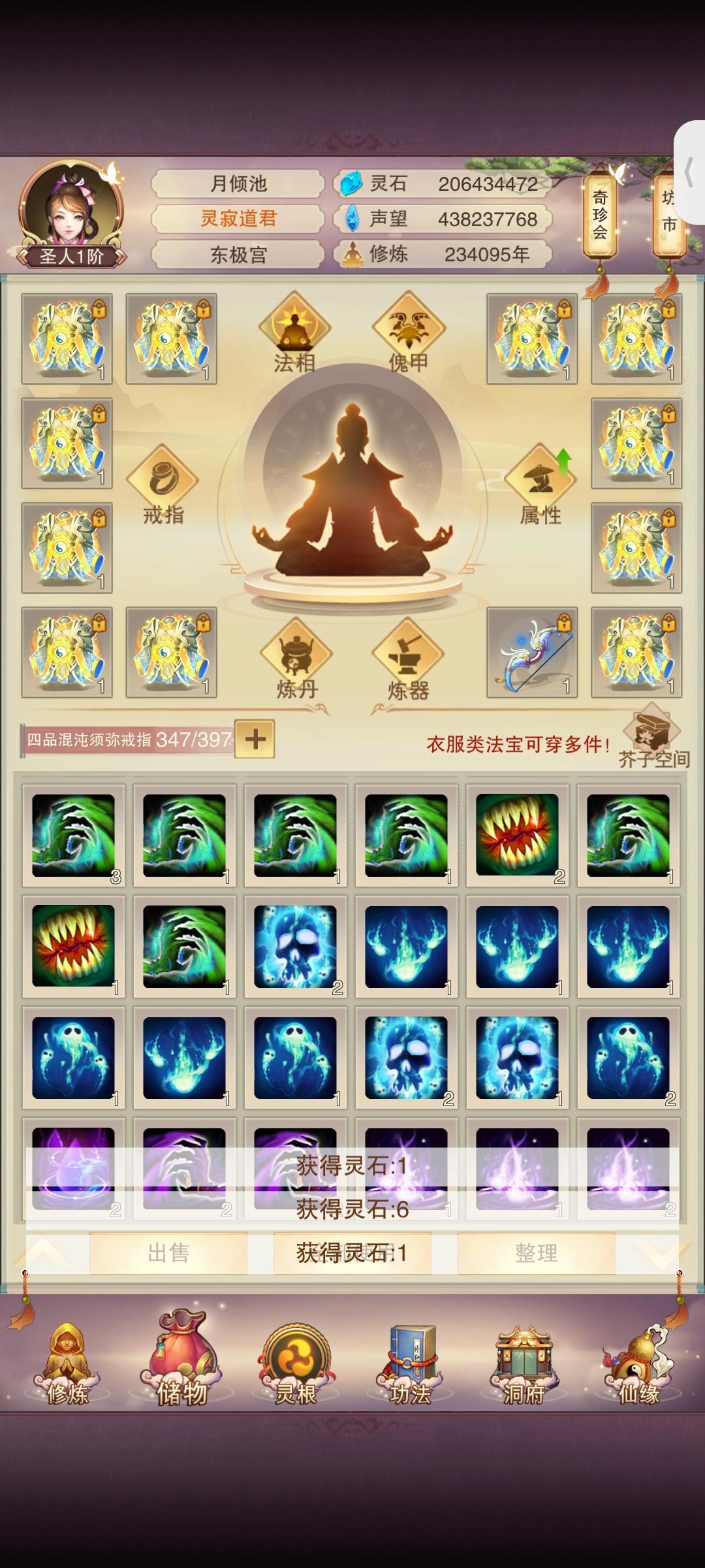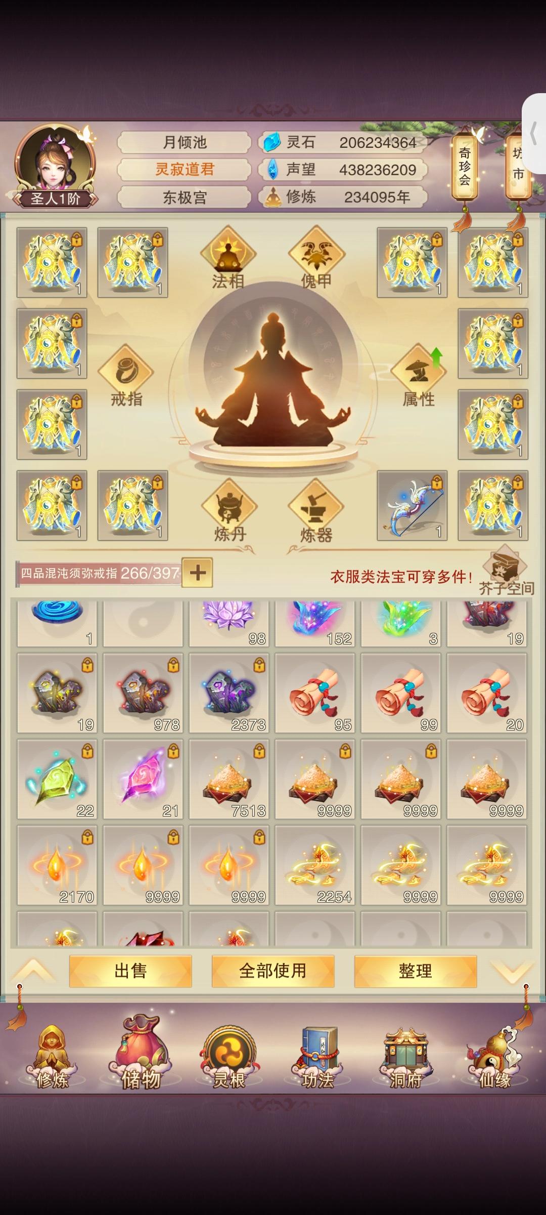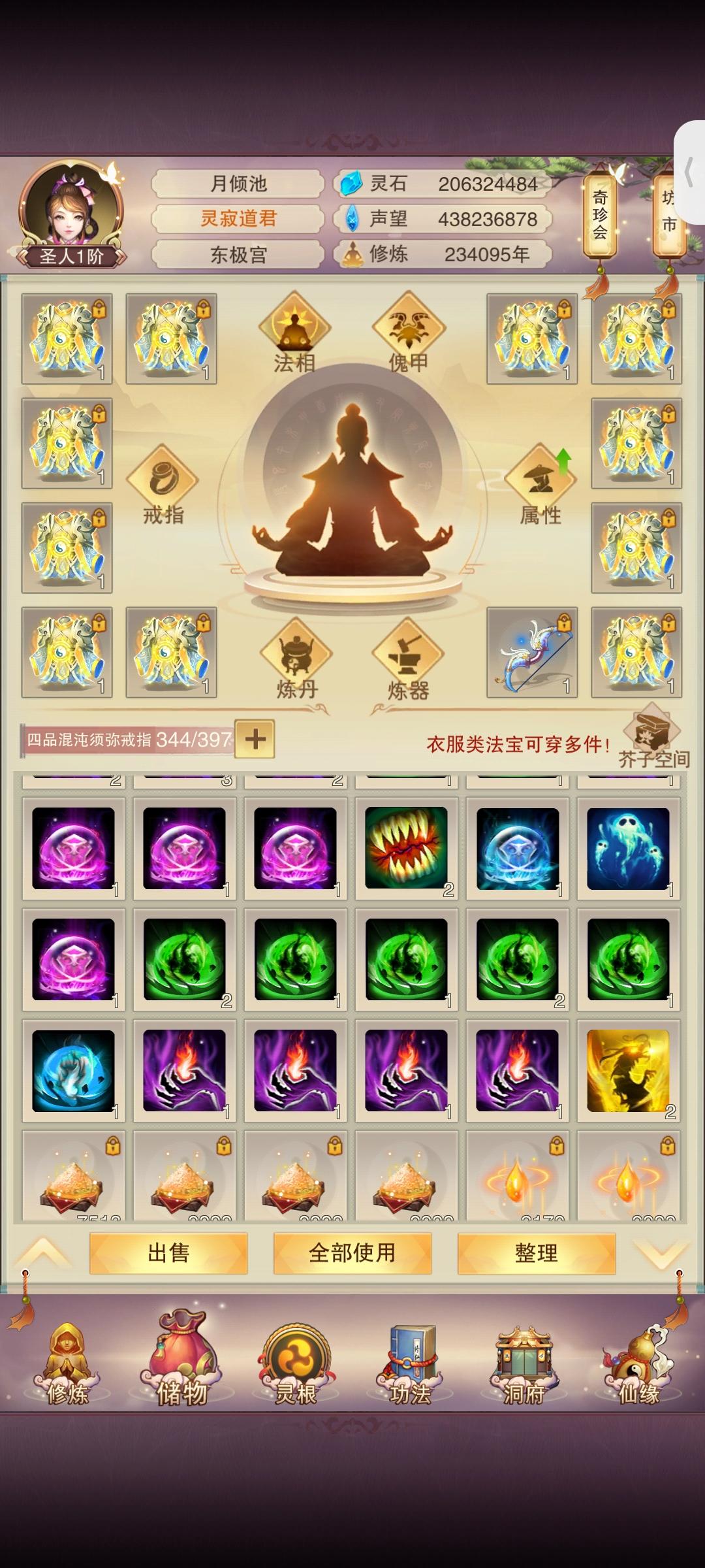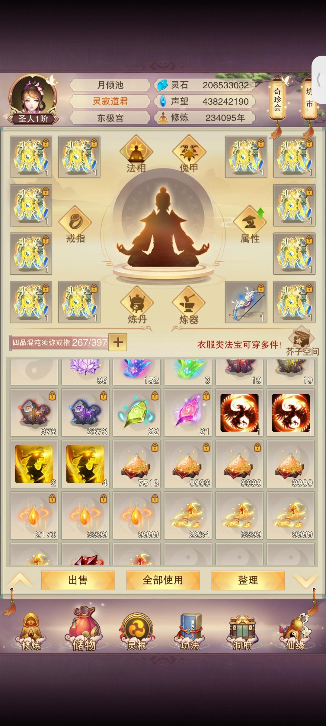 时隔2月(大概)防御属性破千万;上台感言:有一说一其实快坐化了,游戏看的少了关注的也少了唯一的乐趣就是在群里和道友们插科打诨吃吃瓜,如果没有昨天这个更新爆料那大概率,千万属性以后就坐化了。修为方面:彻底放弃修为(因为没用了),五转渡劫丹我都不买了,紫气留着(大用,根本不够用);属性方面:由于阿鬼的产能太低,使得我对游戏没有盼头(例如:夕阳游戏谁敢充钱)。所以氪金很早就已经停了。接下来目标是吃
