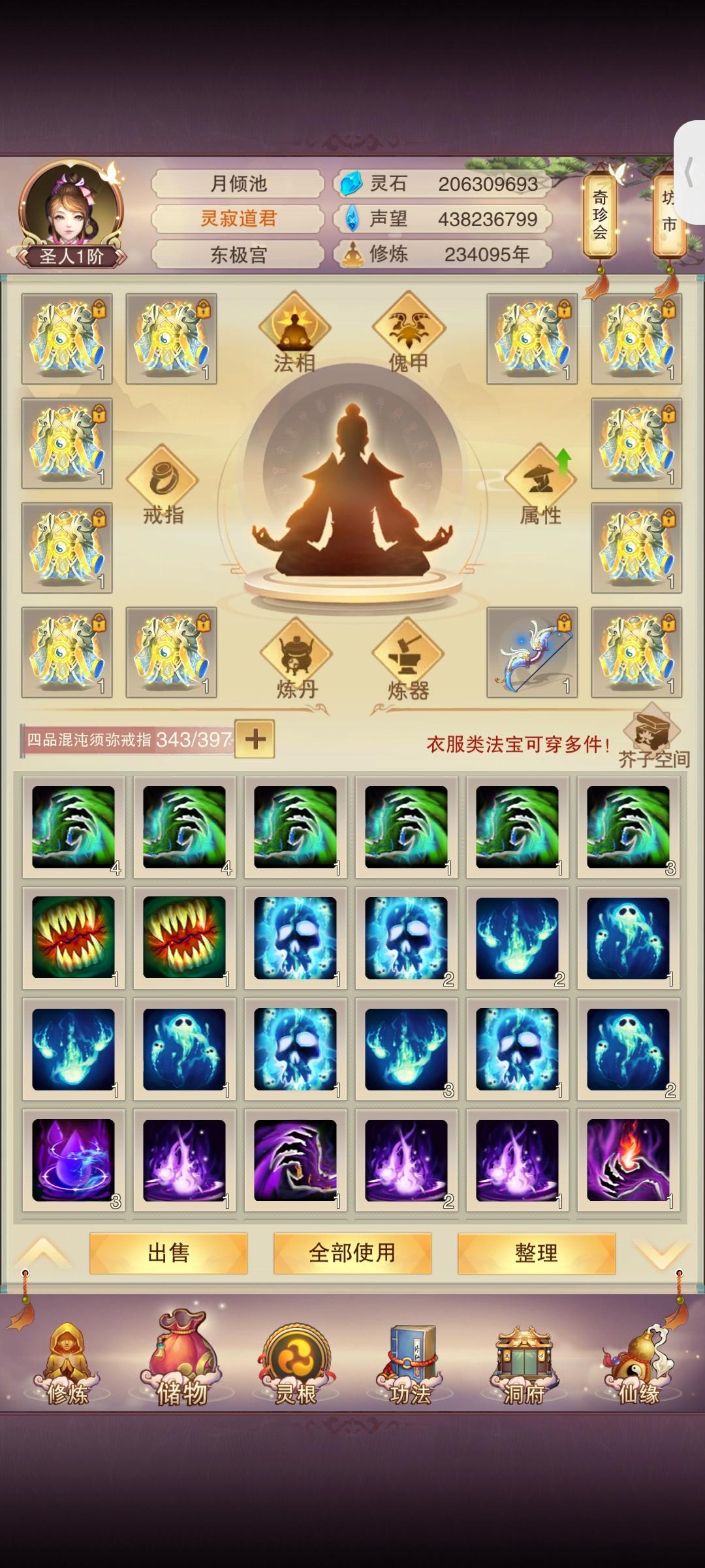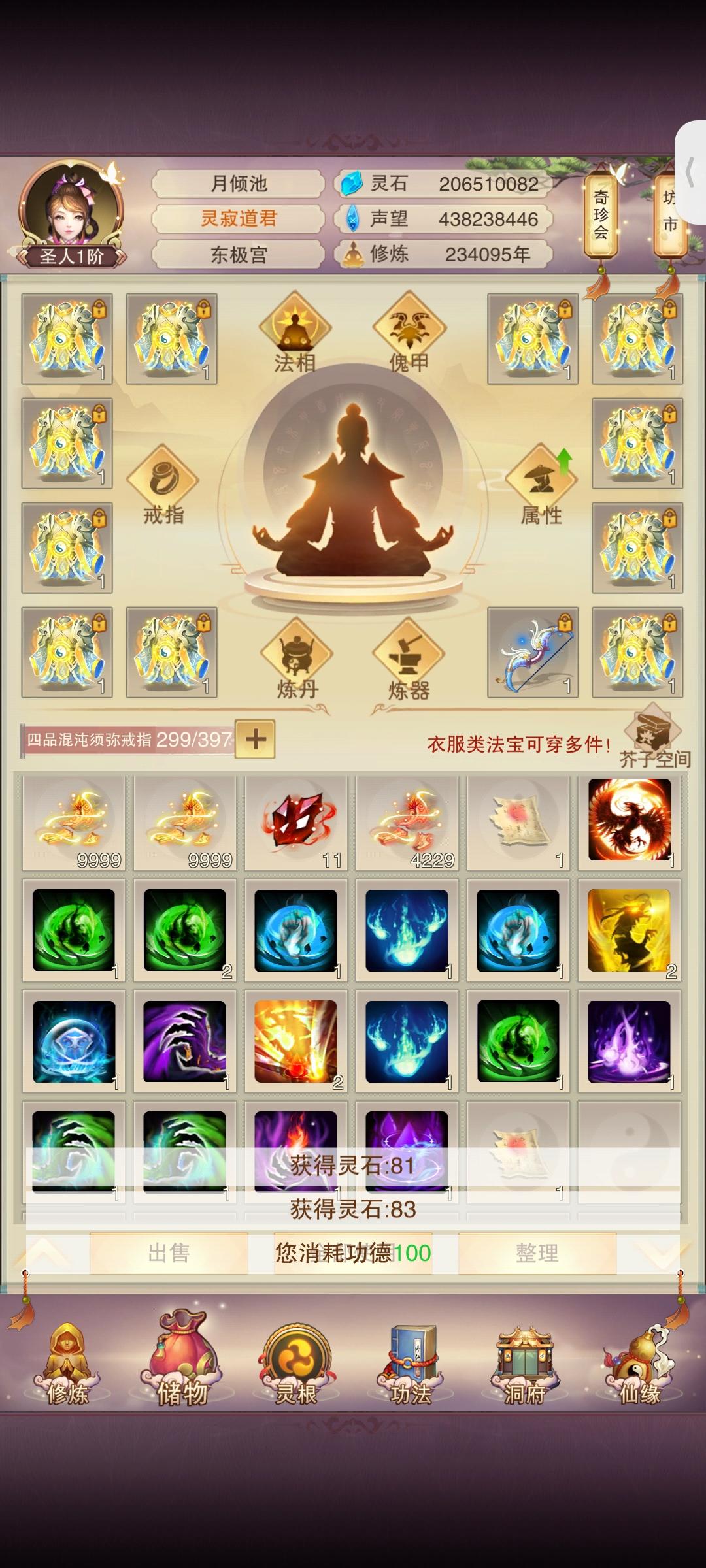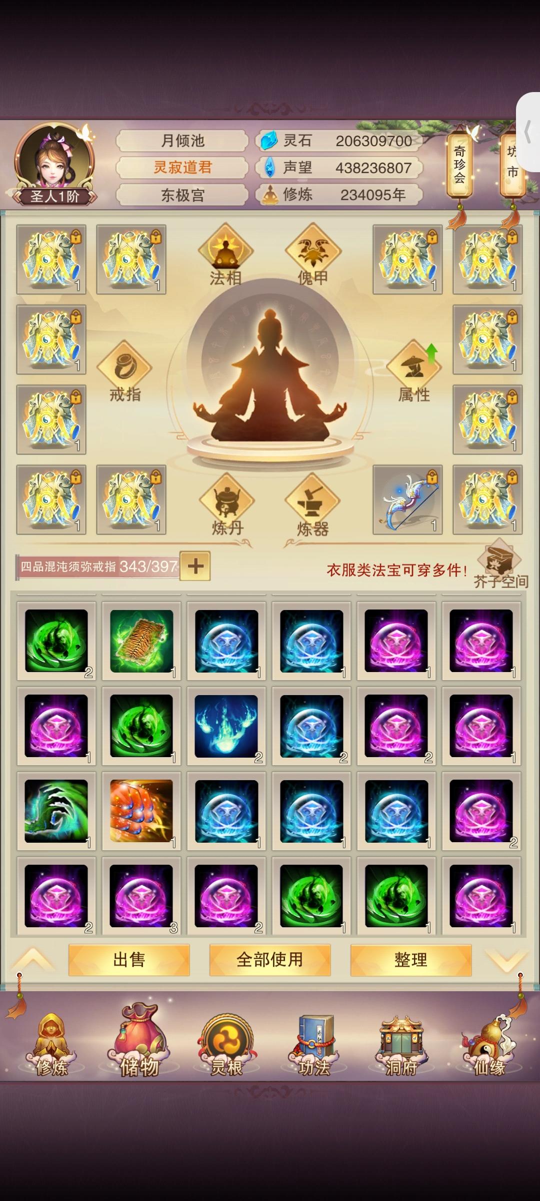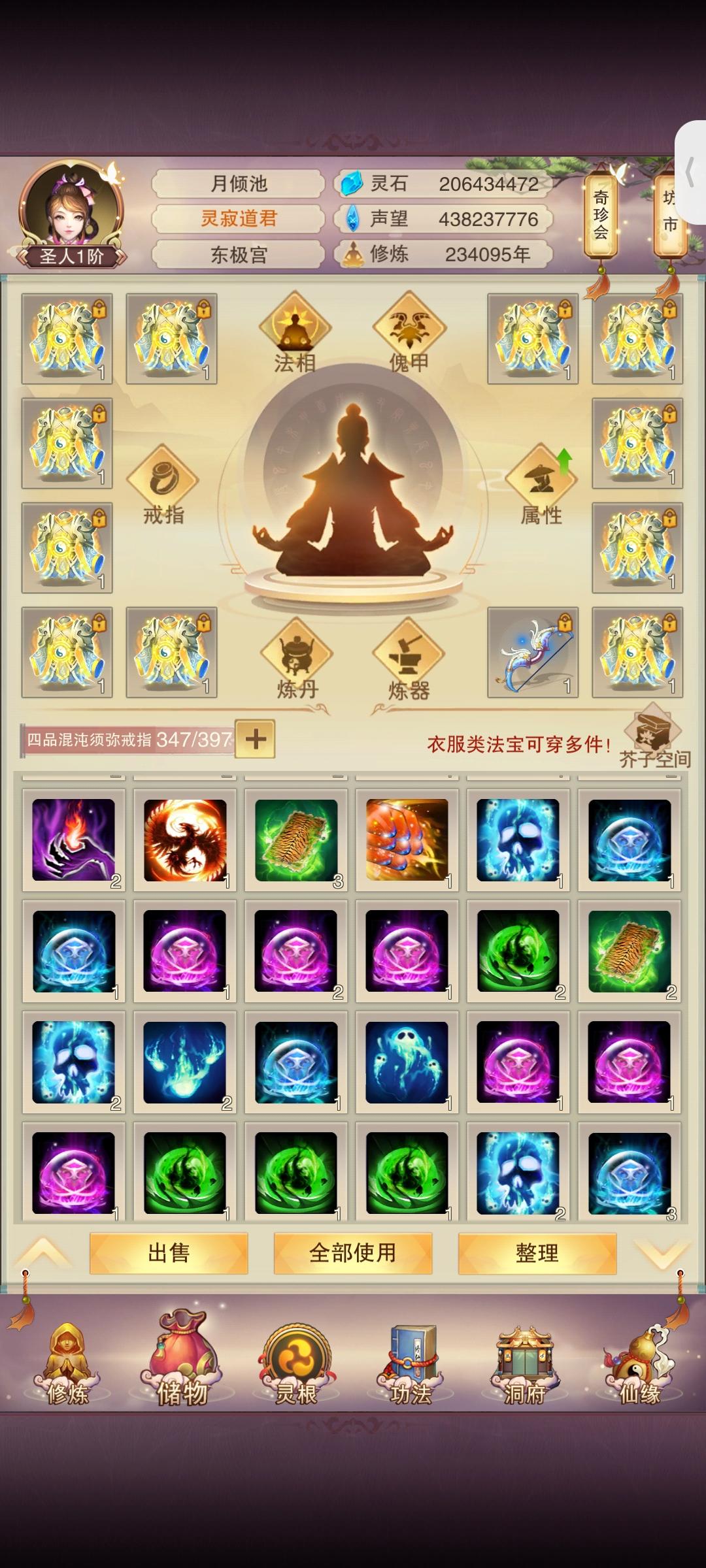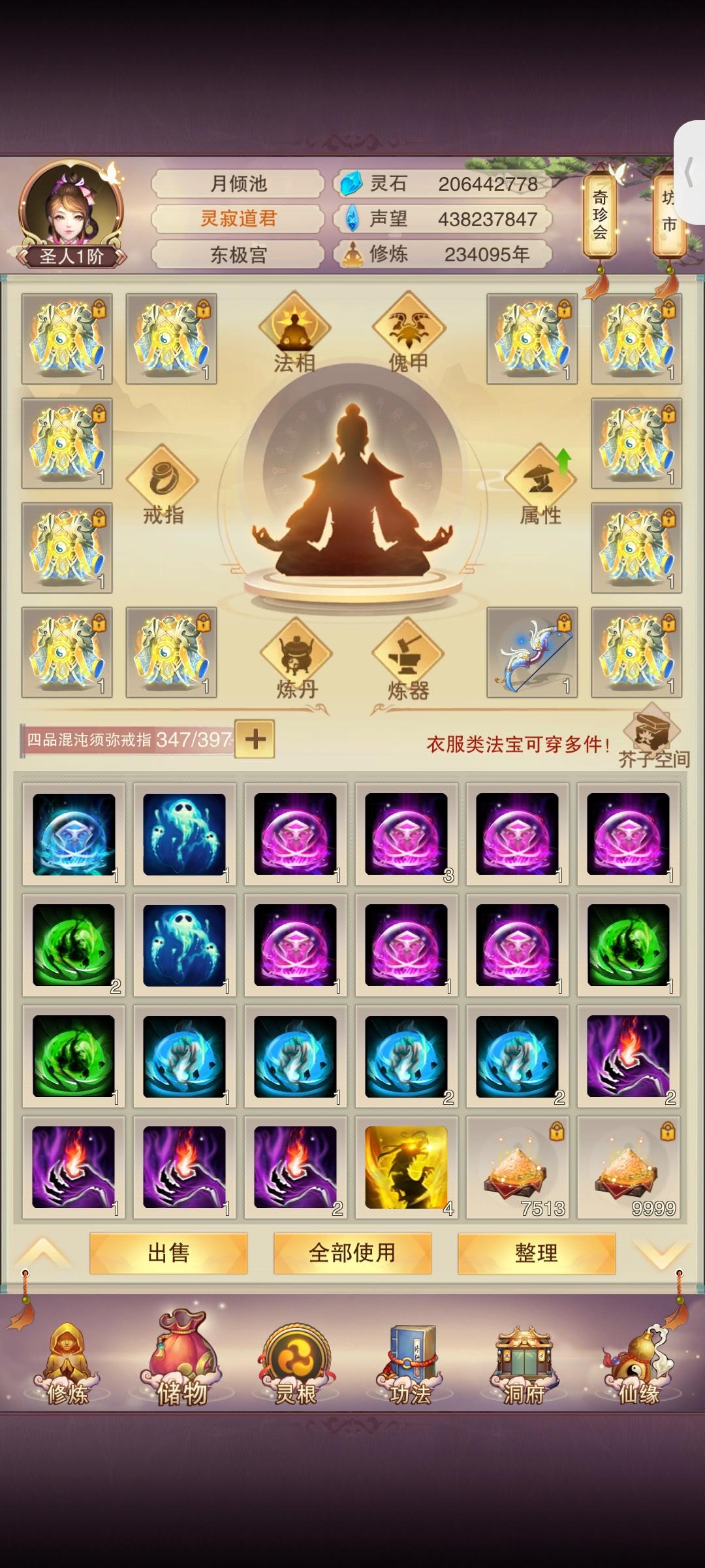 时隔2月(大概)防御属性破千万;上台感言:有一说一其实快坐化了,游戏看的少了关注的也少了唯一的乐趣就是在群里和道友们插科打诨吃吃瓜,如果没有昨天这个更新爆料那大概率,千万属性以后就坐化了。修为方面:彻底放弃修为(因为没用了),五转渡劫丹我都不买了,紫气留着(大用,根本不够用);属性方面:由于阿鬼的产能太低,使得我对游戏没有盼头(例如:夕阳游戏谁敢充钱)。所以氪金很早就已经停了。接下来目标是吃