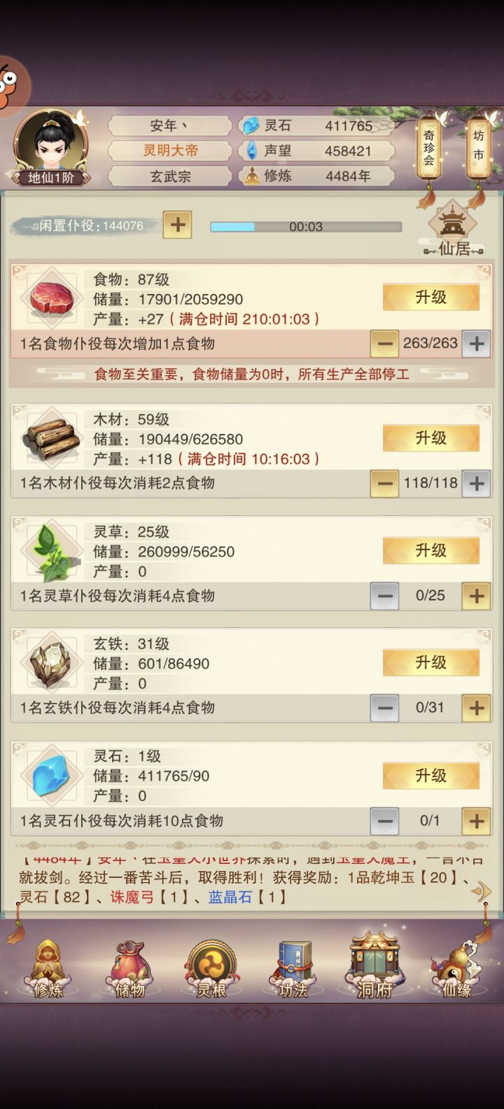 好久没吐槽,鬼佬啊,下次别搞这种无聊的拖延,要多少资源直接给个数,建个台子要花100*100=10000年。修真界有材料有图纸大能都能直接捏出来的,我一个圣人捏个台子要一万年修仙界玩法还是可以的,但是这个飞升台真的是扣大分,这种应该对标圣人道场,有材料直接升级不就行了,只是建筑性的玩法而已,花费万年意义何在?又不像宗门一样需要龙气孕养,你可以卡材料,但是卡时间就很不合理。卡时间玩