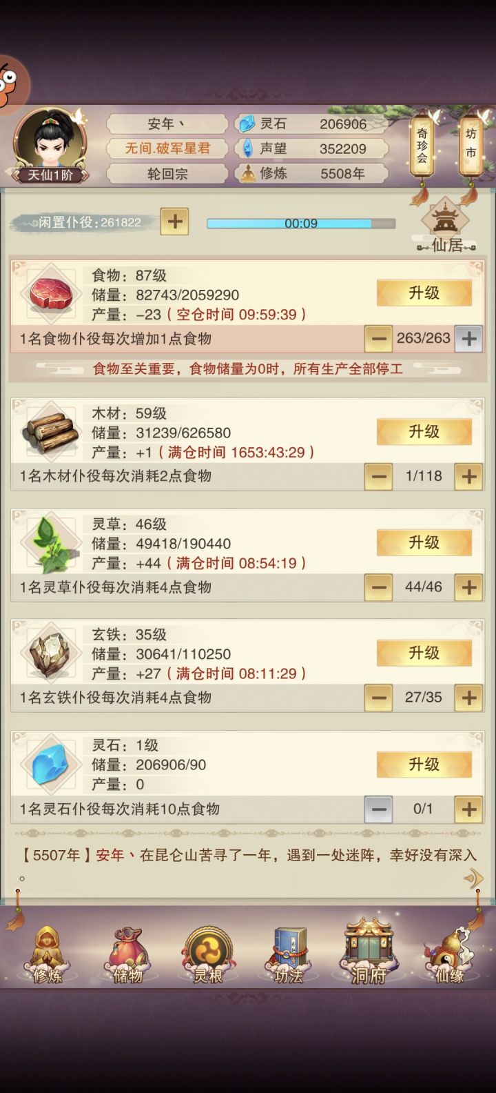 好久没吐槽,鬼佬啊,下次别搞这种无聊的拖延,要多少资源直接给个数,建个台子要花100*100=10000年。修真界有材料有图纸大能都能直接捏出来的,我一个圣人捏个台子要一万年修仙界玩法还是可以的,但是这个飞升台真的是扣大分,这种应该对标圣人道场,有材料直接升级不就行了,只是建筑性的玩法而已,花费万年意义何在?又不像宗门一样需要龙气孕养,你可以卡材料,但是卡时间就很不合理。卡时间玩