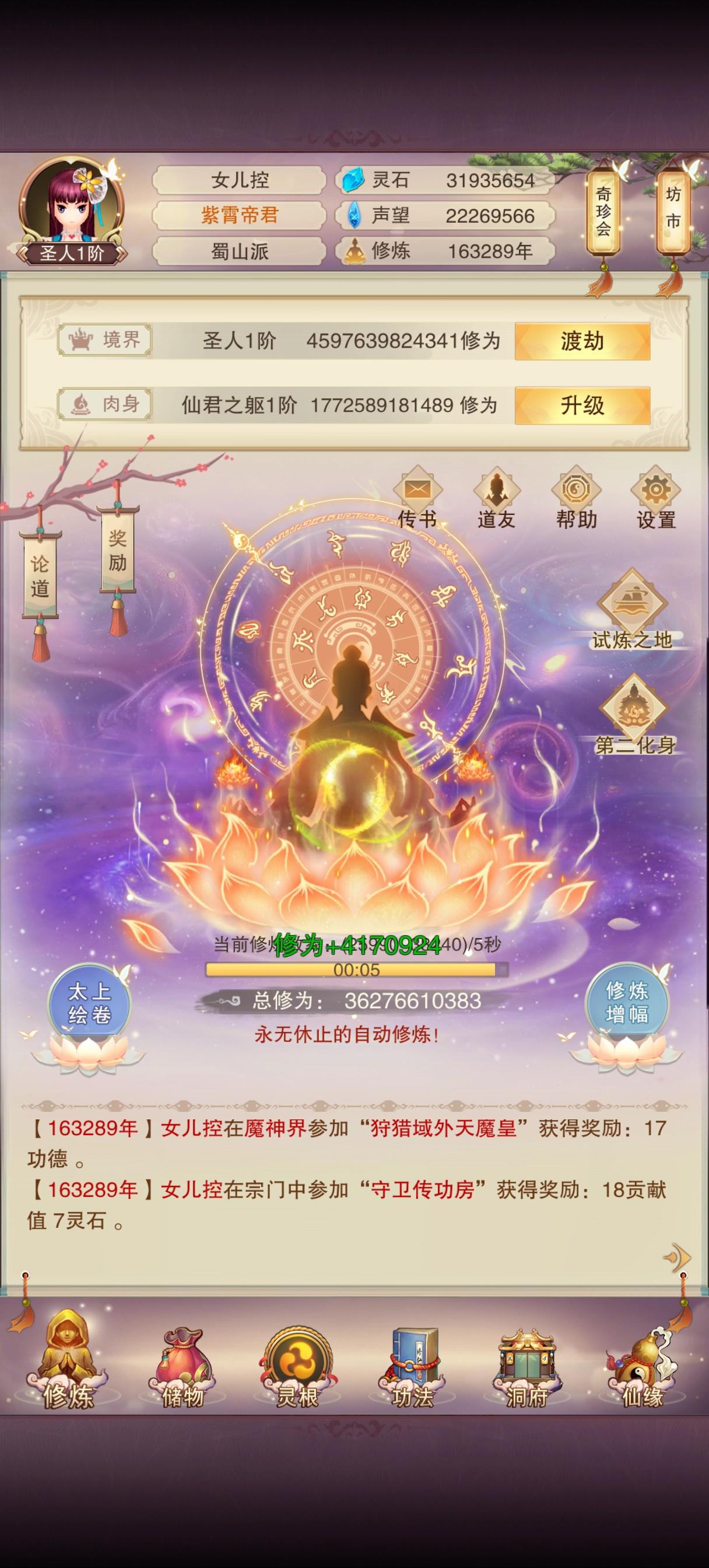 终于帝仙6️⃣,可以刷最高神通啦😎;鸿蒙我到了…开始学习新知识🤣中元打的有点慢#想不想修真 来自TapTap[ID:627769964 王灵官]
