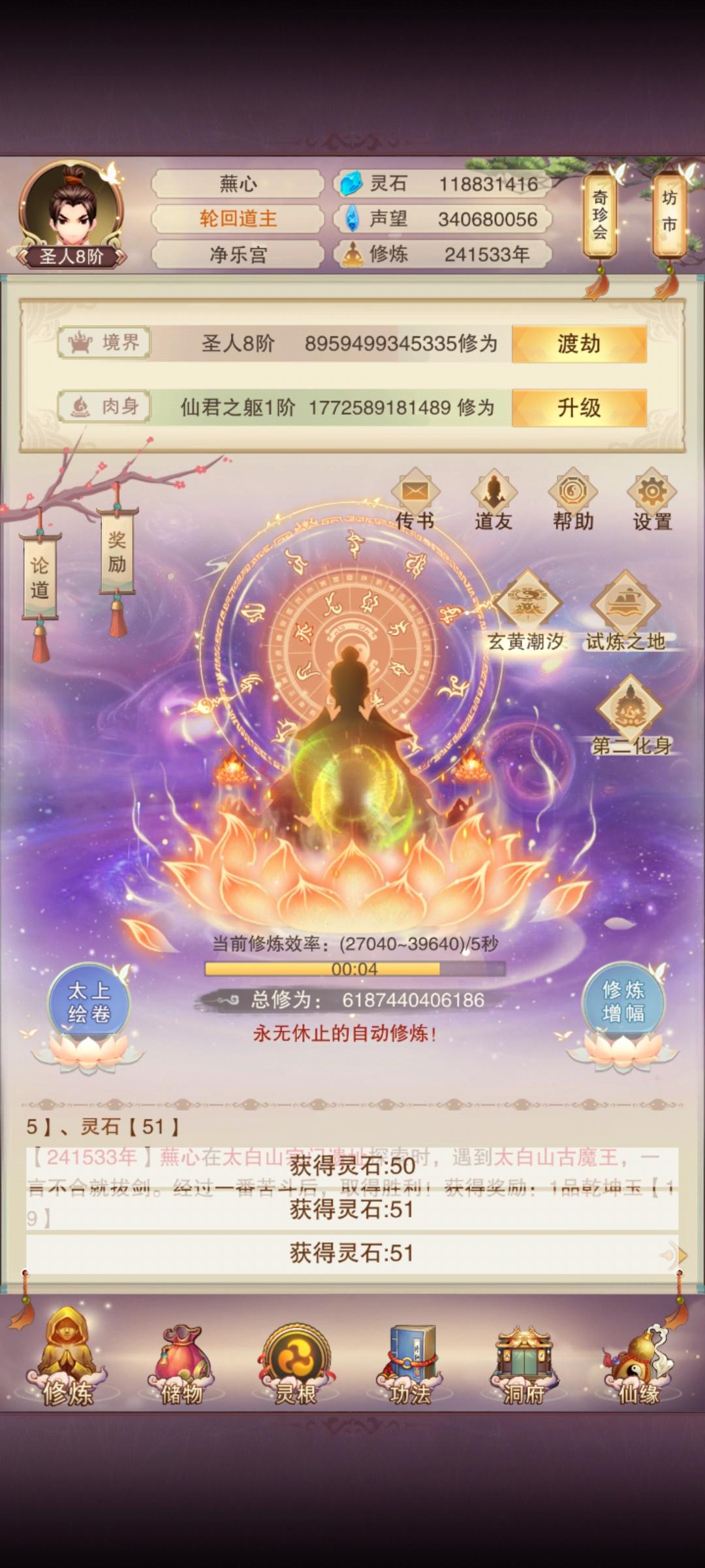 到了玄黄溢出的年份才发现这玩意消耗多的不是玄黄是灵石!!!!!哥们的两亿灵石阿……………有没有升满的道友,科普下最高多少阿……