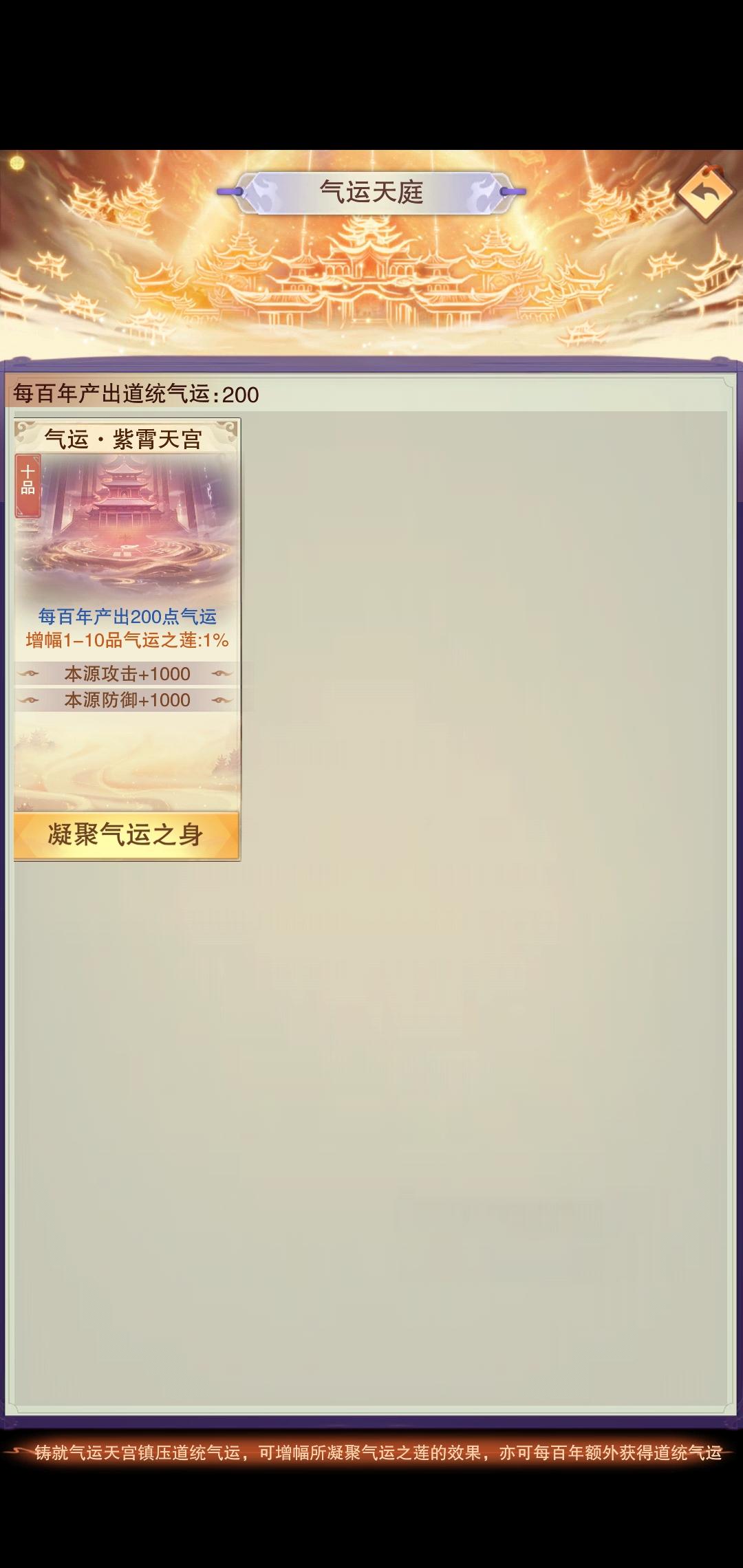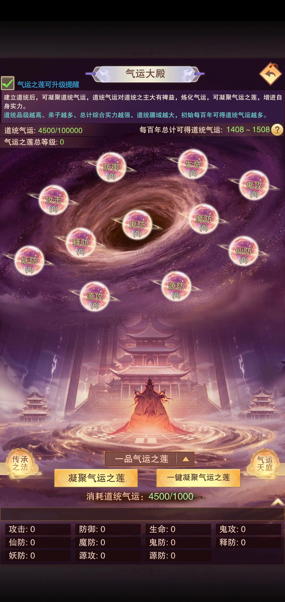 老样子,更新公告一大堆,理解起来费力,还得自己梳理一遍,顺带分享给需要的道友们。核心概念气运:货币,拿来抽奖莲花(属性),以及升级用,换天庭。天庭凝聚气运之身也需要。货币核心气运之莲:道统系统,主要提供属性的地方。后面简称莲花。属性核心气运天庭:提供额外加成的地方,比如额外增加属性,额外增加气运。白嫖18个,上灵18个。累计36个。后面简称天庭。道统疆域:大地图(复用鸿蒙10个大地图),