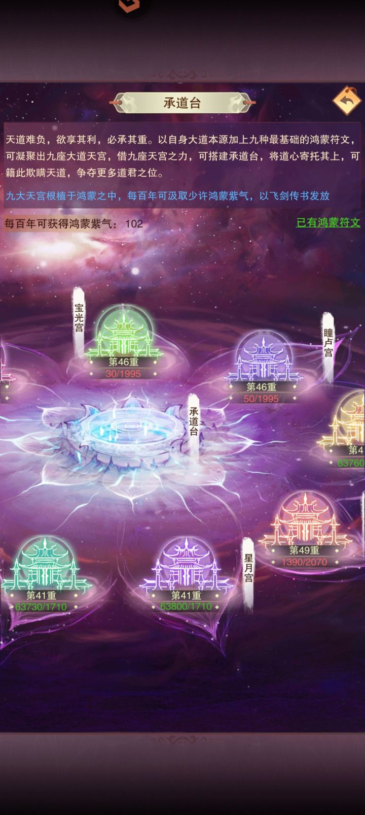 已有功能:准圣承道台10级开启太阳道身,本体80%实力,圣人承道台30级开启太**身,本体60%实力,道身只能够担任界主,不可当官。承道台继续升级,除了增加属性外没有后续功能。建议:随着承道台继续升级,增加道身实力,如:所有承道台升至40级,太阴太阳两个道身所继承本体的实力各增幅5%。(现在用道身打后面的界主,已经有点吃力了,有概率翻车了)