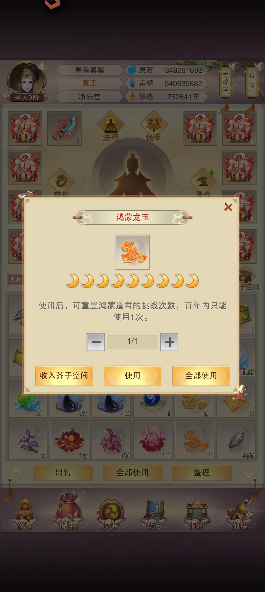 时隔2月(大概)防御属性破千万;上台感言:有一说一其实快坐化了,游戏看的少了关注的也少了唯一的乐趣就是在群里和道友们插科打诨吃吃瓜,如果没有昨天这个更新爆料那大概率,千万属性以后就坐化了。修为方面:彻底放弃修为(因为没用了),五转渡劫丹我都不买了,紫气留着(大用,根本不够用);属性方面:由于阿鬼的产能太低,使得我对游戏没有盼头(例如:夕阳游戏谁敢充钱)。所以氪金很早就已经停了。接下来目标是吃