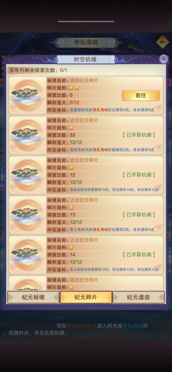时光海纪元碎片已经到道劫海域了,灵虚纪元只探索到一个,后续还能探索到吗?缺一个灵虚卷上卷才能兑换时光密券。。