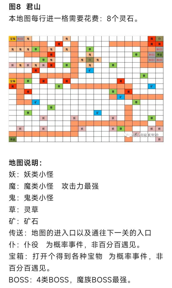地肺山、盖竹山、南田山、玉溜山、清屿山、郁木洞、丹霞洞、君山、大若岩简称图1-图9以下地图内容中,部分坐标上出现事件为随机,并非百分百出现。内容取材至想不想修真官微