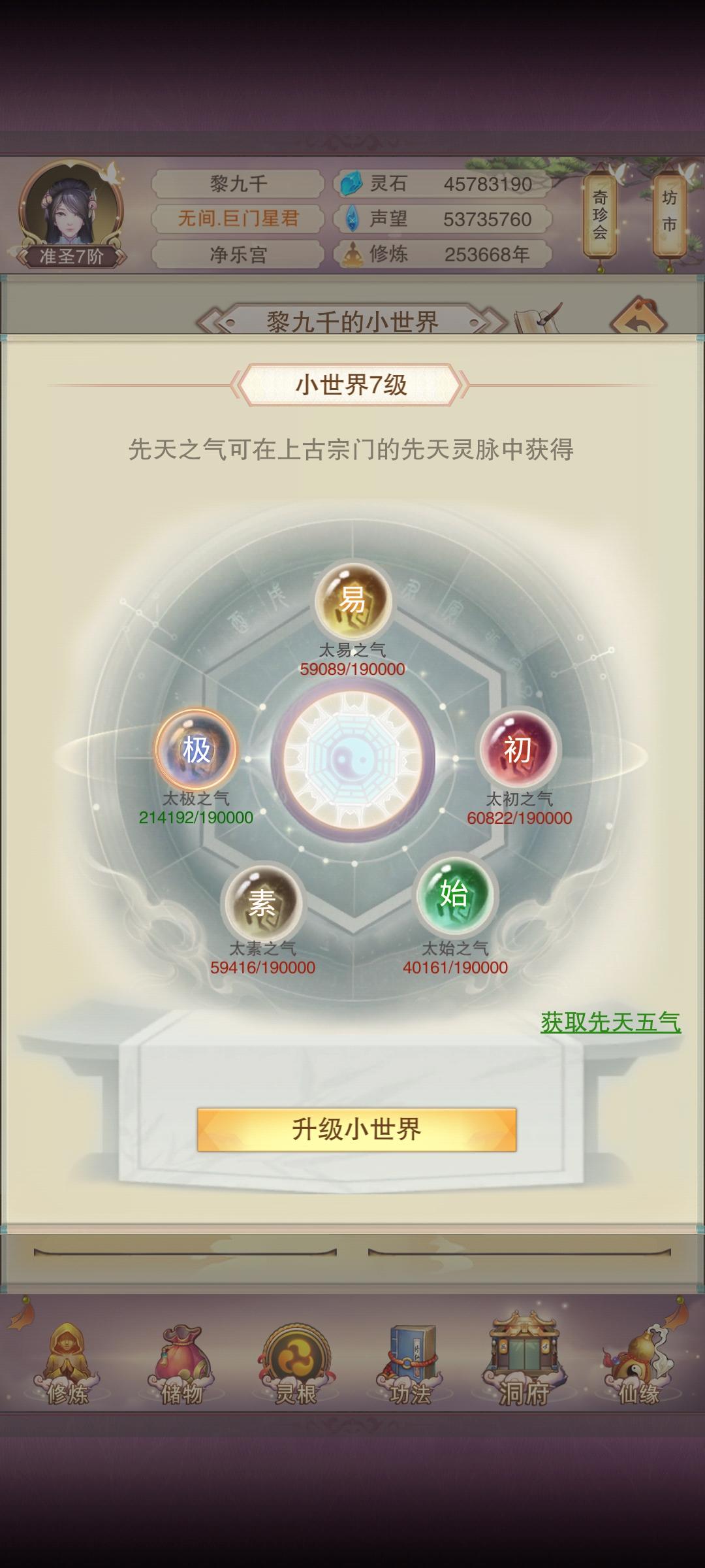 时隔2月(大概)防御属性破千万;上台感言:有一说一其实快坐化了,游戏看的少了关注的也少了唯一的乐趣就是在群里和道友们插科打诨吃吃瓜,如果没有昨天这个更新爆料那大概率,千万属性以后就坐化了。修为方面:彻底放弃修为(因为没用了),五转渡劫丹我都不买了,紫气留着(大用,根本不够用);属性方面:由于阿鬼的产能太低,使得我对游戏没有盼头(例如:夕阳游戏谁敢充钱)。所以氪金很早就已经停了。接下来目标是吃