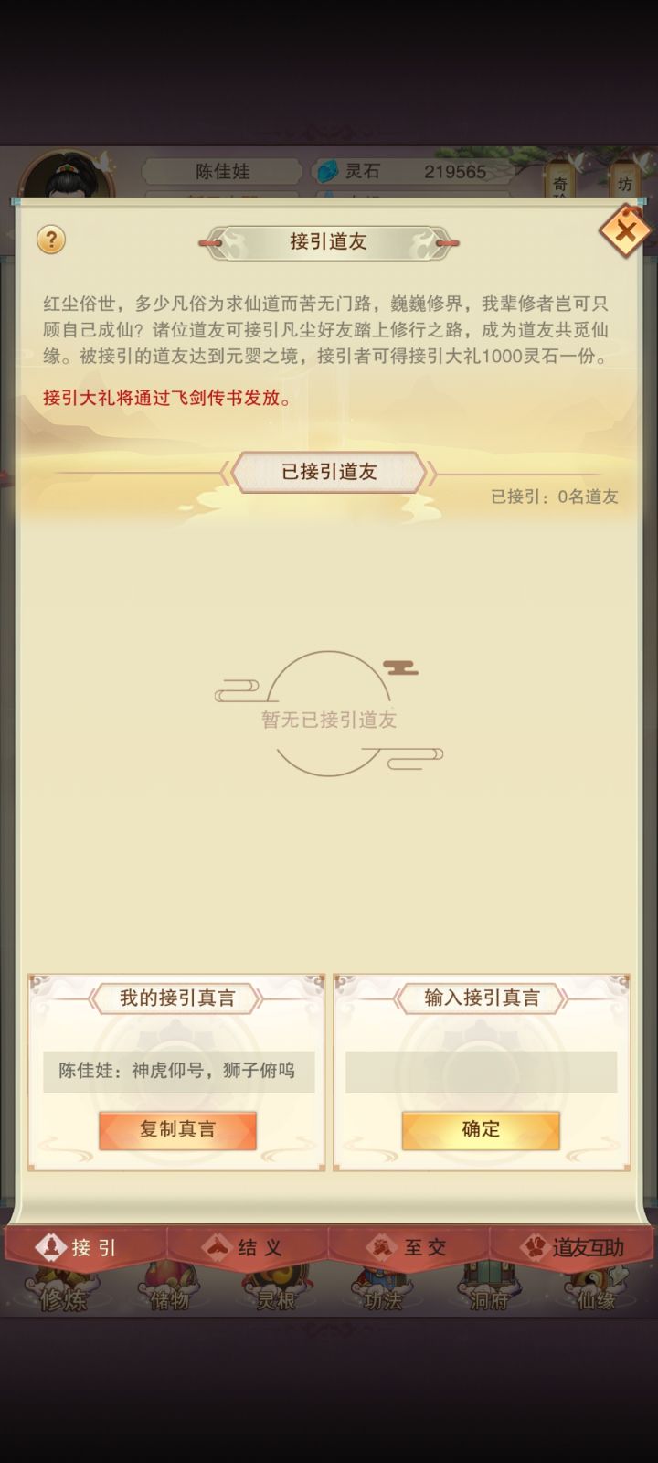 陈佳娃:神虎仰号,狮子俯呜3月21开的新区的道友可以跟我建立接引关系,可以领一些资源哦