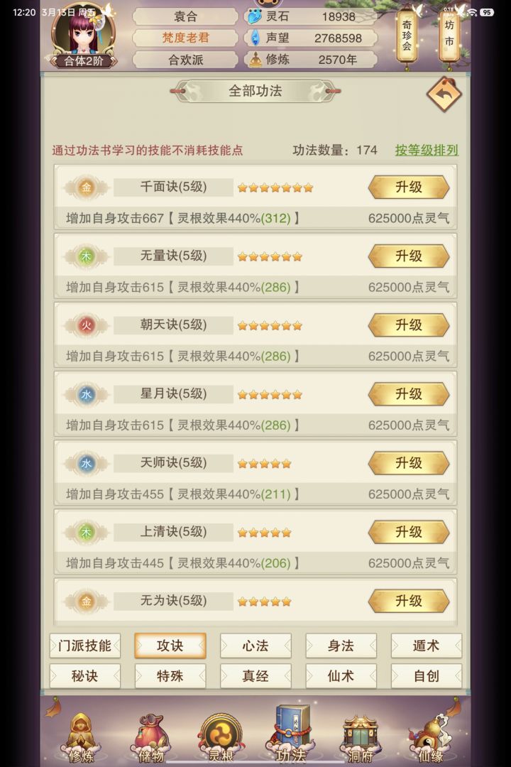 一天之内仙书坊三楼4本攻防书全刷到了,凌晨出了一本,中午出了3本,但是我却高兴不起来因为我没有灵石昨天六万洗加今天凌晨买7星攻耗尽了我的灵石
