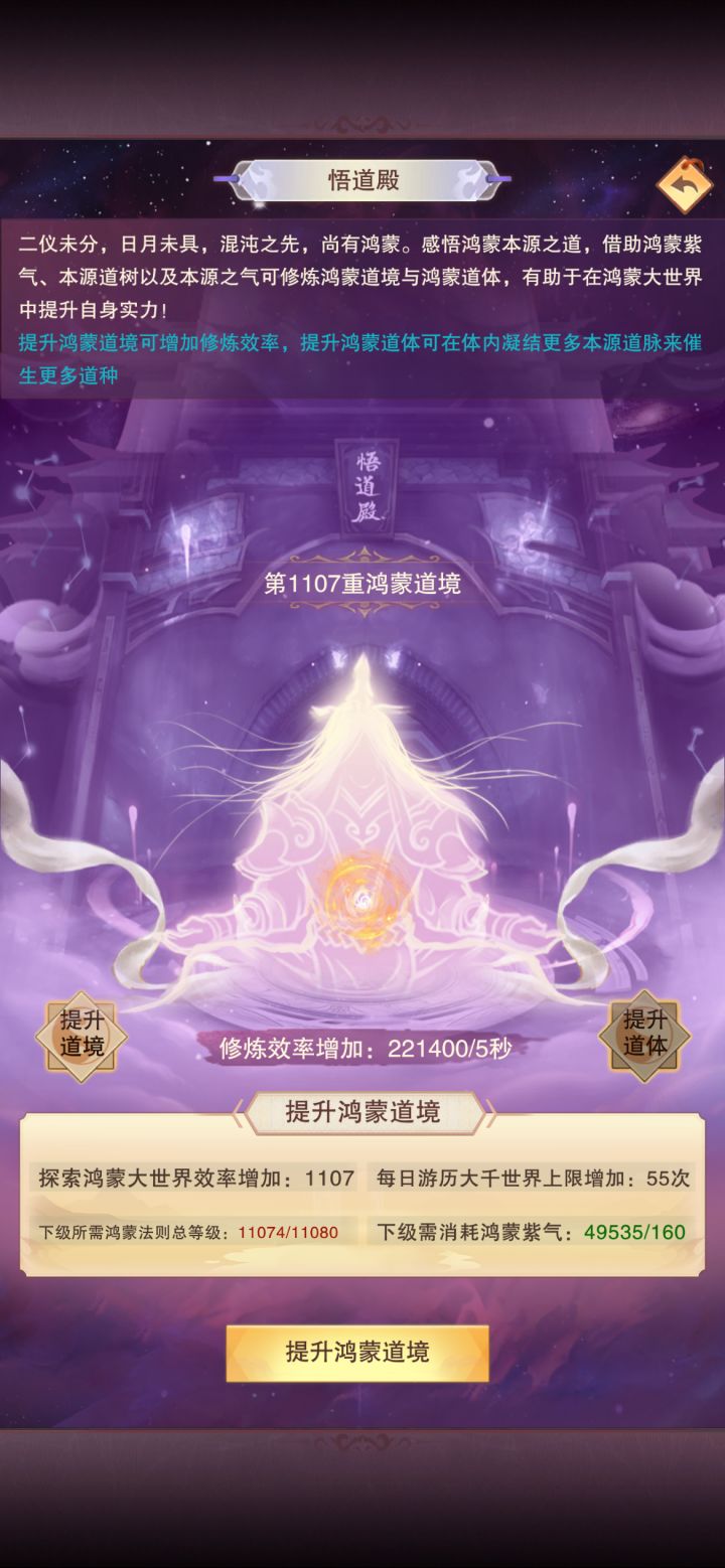 已有功能:准圣承道台10级开启太阳道身,本体80%实力,圣人承道台30级开启太**身,本体60%实力,道身只能够担任界主,不可当官。承道台继续升级,除了增加属性外没有后续功能。建议:随着承道台继续升级,增加道身实力,如:所有承道台升至40级,太阴太阳两个道身所继承本体的实力各增幅5%。(现在用道身打后面的界主,已经有点吃力了,有概率翻车了)