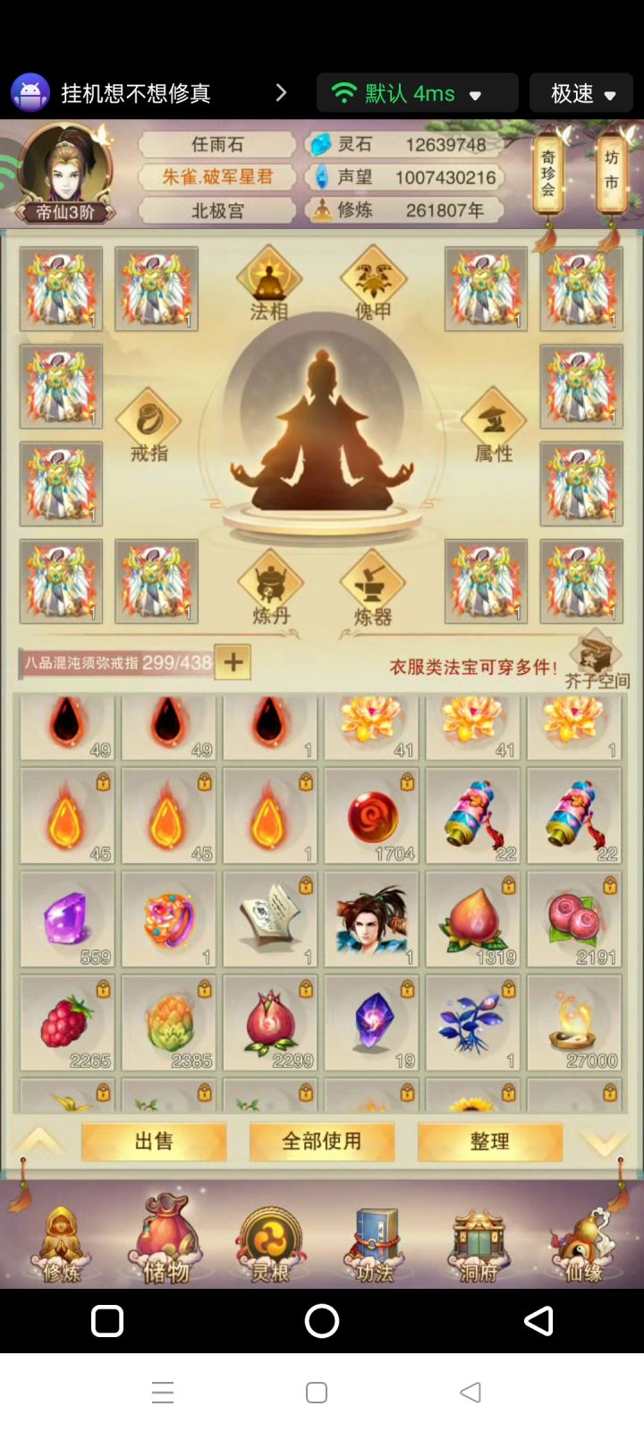 4900年,就当5000年记录贴了大乘4,银骨10,天一界主78进度,已经能打天二,可惜区一进度有点慢,预计打完天一还要被卡五天今天偷过了天十六(但是好像没啥用)九器材料蓝石头已经齐了,还差300红石头和1000+金岭洞府74肉56木(遥遥领先)预计84肉冲洗髓101,预计15天