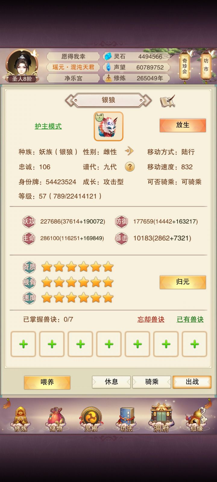 4900年,就当5000年记录贴了大乘4,银骨10,天一界主78进度,已经能打天二,可惜区一进度有点慢,预计打完天一还要被卡五天今天偷过了天十六(但是好像没啥用)九器材料蓝石头已经齐了,还差300红石头和1000+金岭洞府74肉56木(遥遥领先)预计84肉冲洗髓101,预计15天