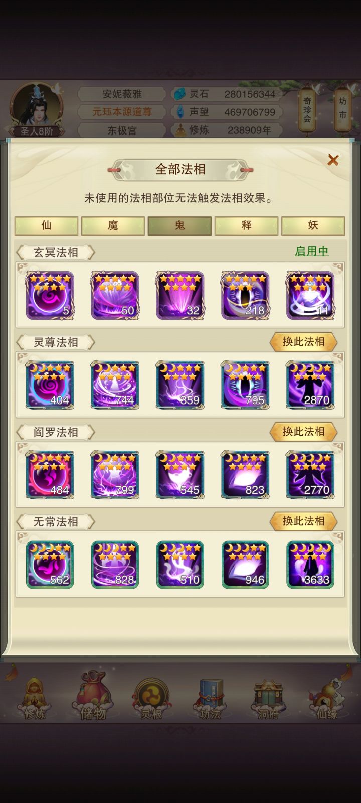 37级神墓等级抽了41天法眼,真伤法眼只增加了13个玩了这么久还没真伤9级法相