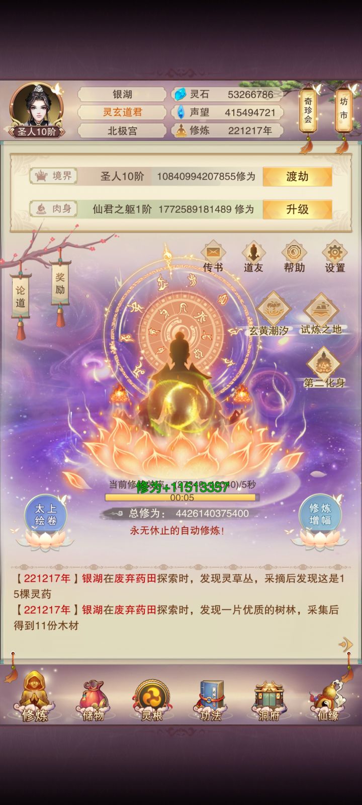 首先你得去天外天兜率宫,花1000功德买个八卦镜,大罗金仙才能进。进去以后其实是个半挂机菜园子,重点只有两个: