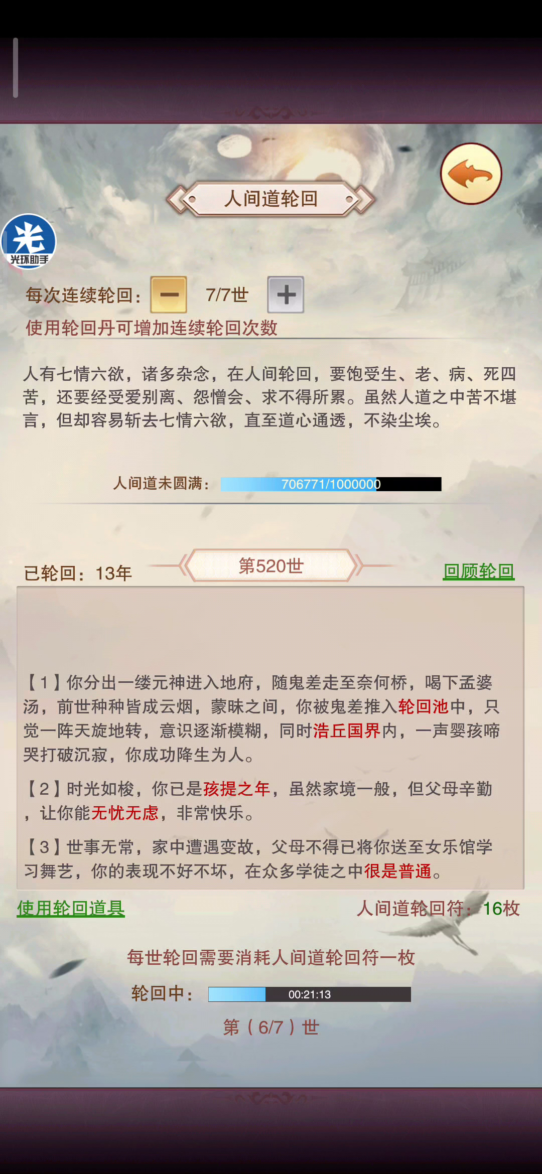 你们看这是卡bug了吗? 明明选定出窍轮次的时候没有超过心魔上限,按理说一次出窍最多也只能把次数拉到心魔上限,但是我这个选轮次的时候他没有提醒我已经到上限了,我一次出窍直接超了好几百轮。你们看我现在出窍还有300轮,但是再100轮我就超了…