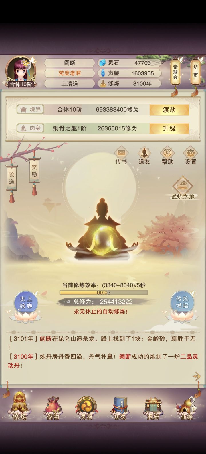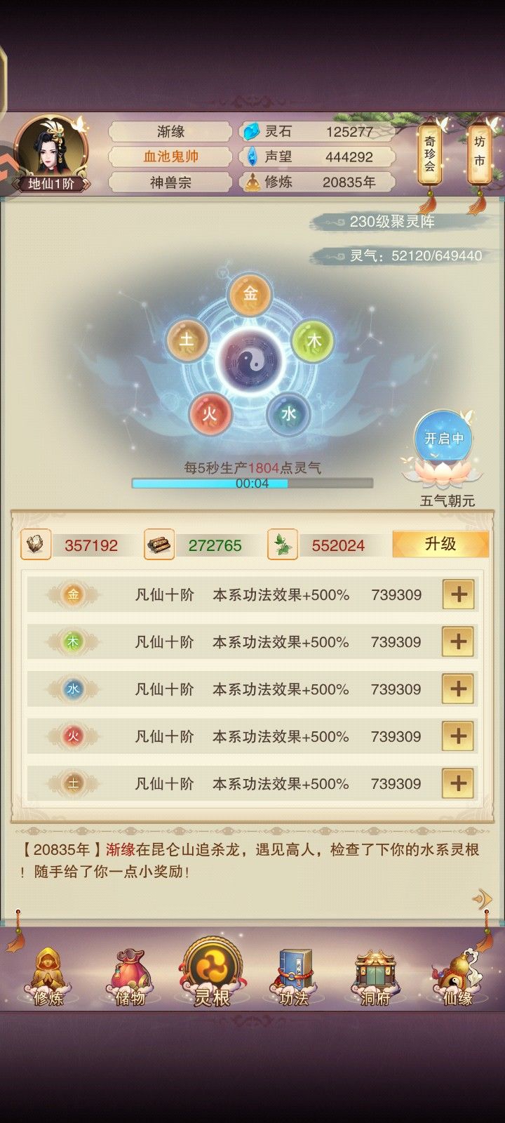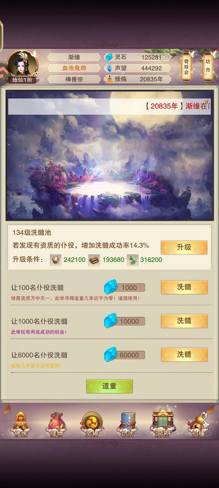 6w洗1火,道童44/49,缺1木1土6w洗1金1火,道童46/49,缺1木1土共计零食36.6+96+6*2=144.6w1→4品三维 + 1→5品血煞齐静待洞虚,能否破3200#想不想修真日常 #想不想修真