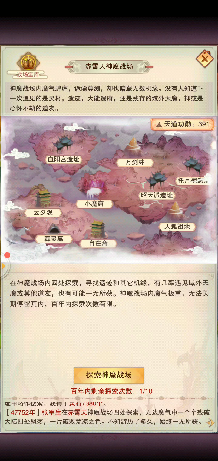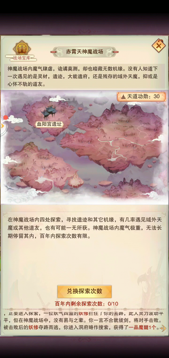 天妖祖地,点进去就返回神魔战场的探索界面!