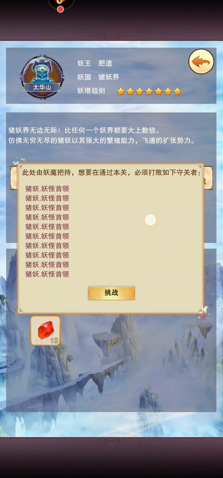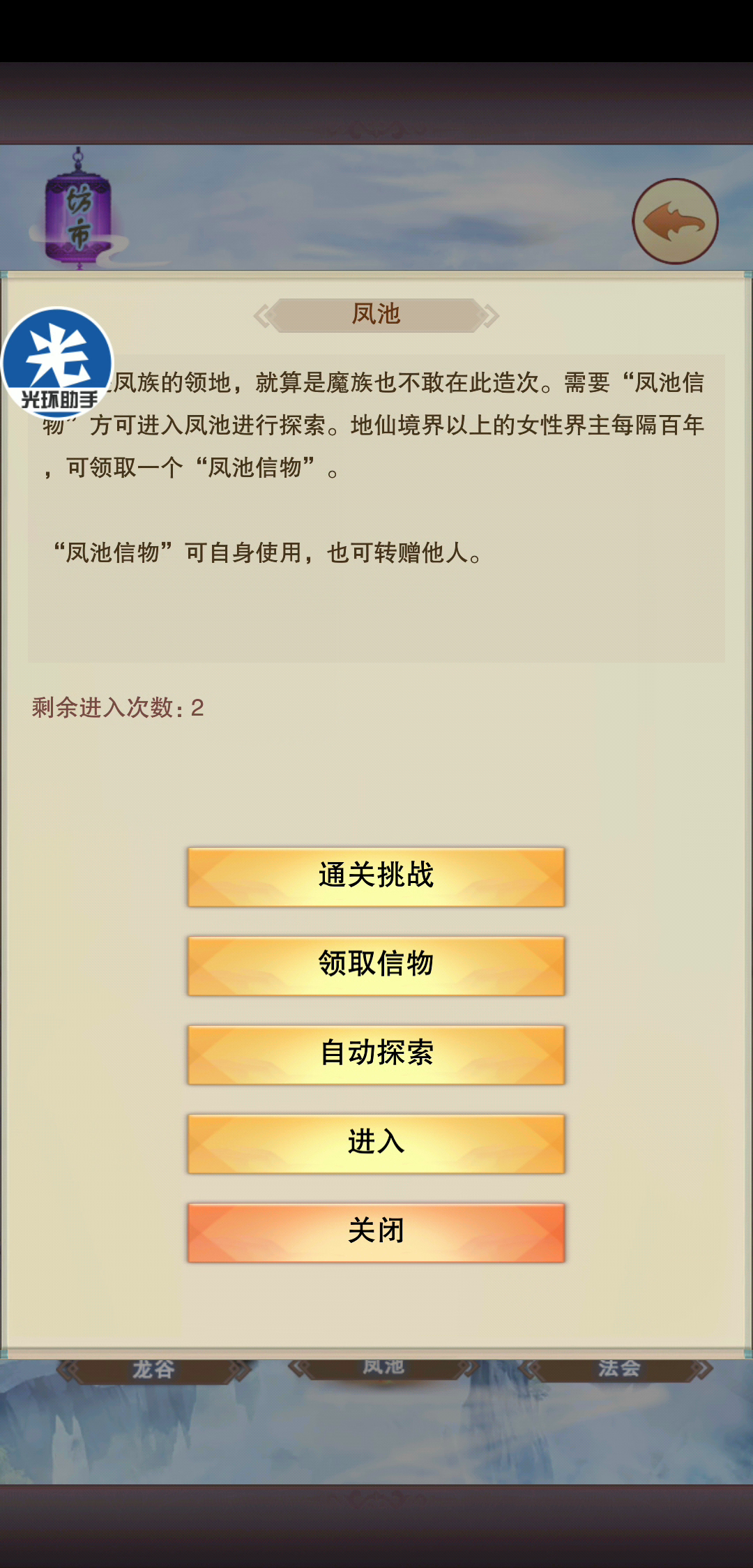 通关挑战 魔殿点通关挑战,没有反应。。 凤池点通关挑战,直接进入战斗界面。。。~~~~