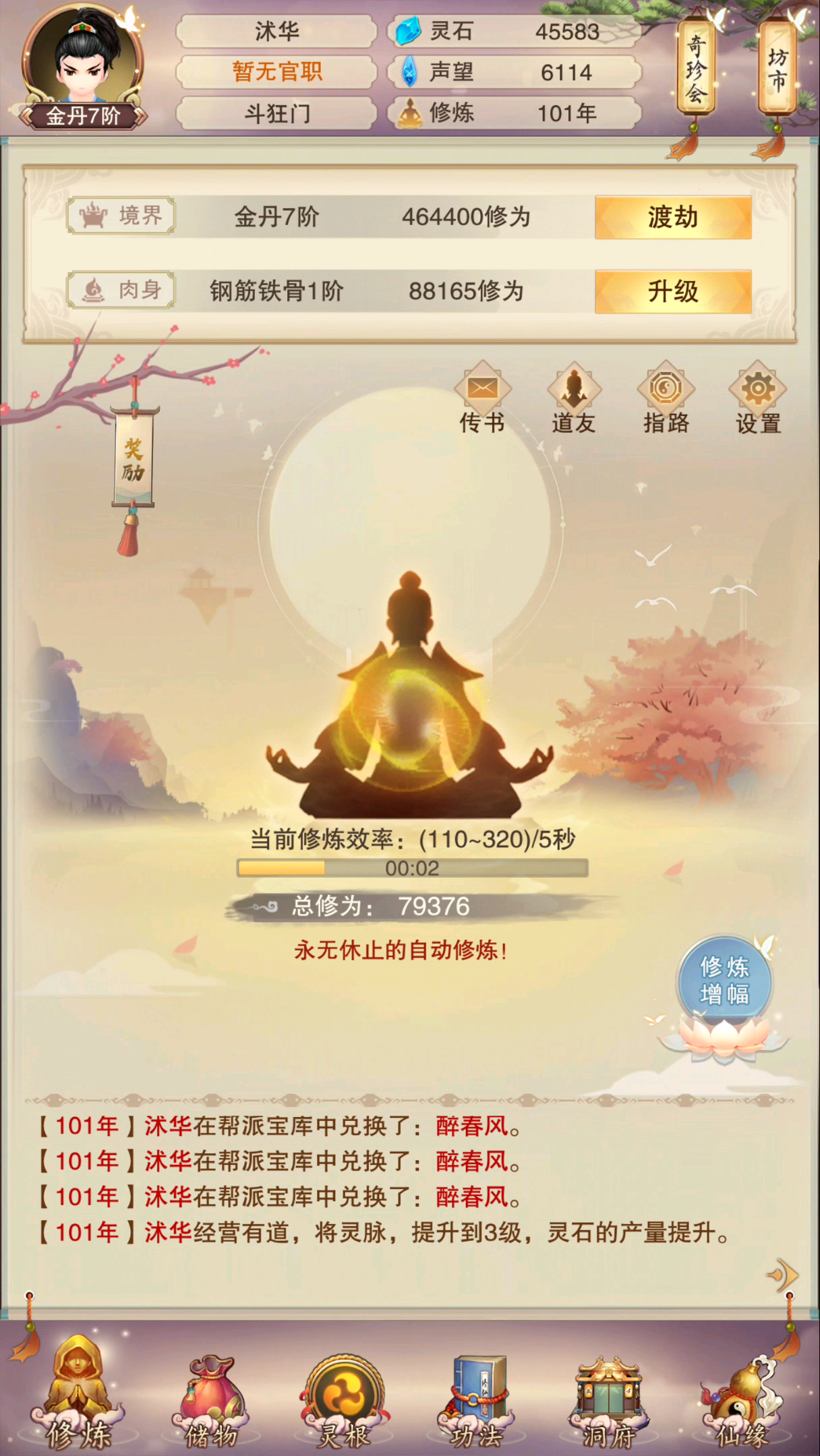装备也都是上品,打小怪几乎闪避,4关的boss干不赢,伤害1000多。难不成我现在就等着到出窍吗?