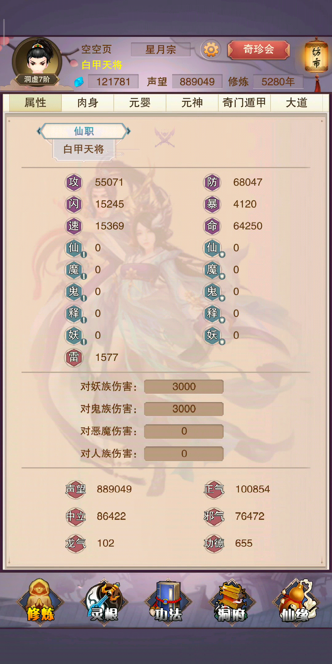 这号是不是废了 散仙才上天 属性炸的一批 还没有宠物