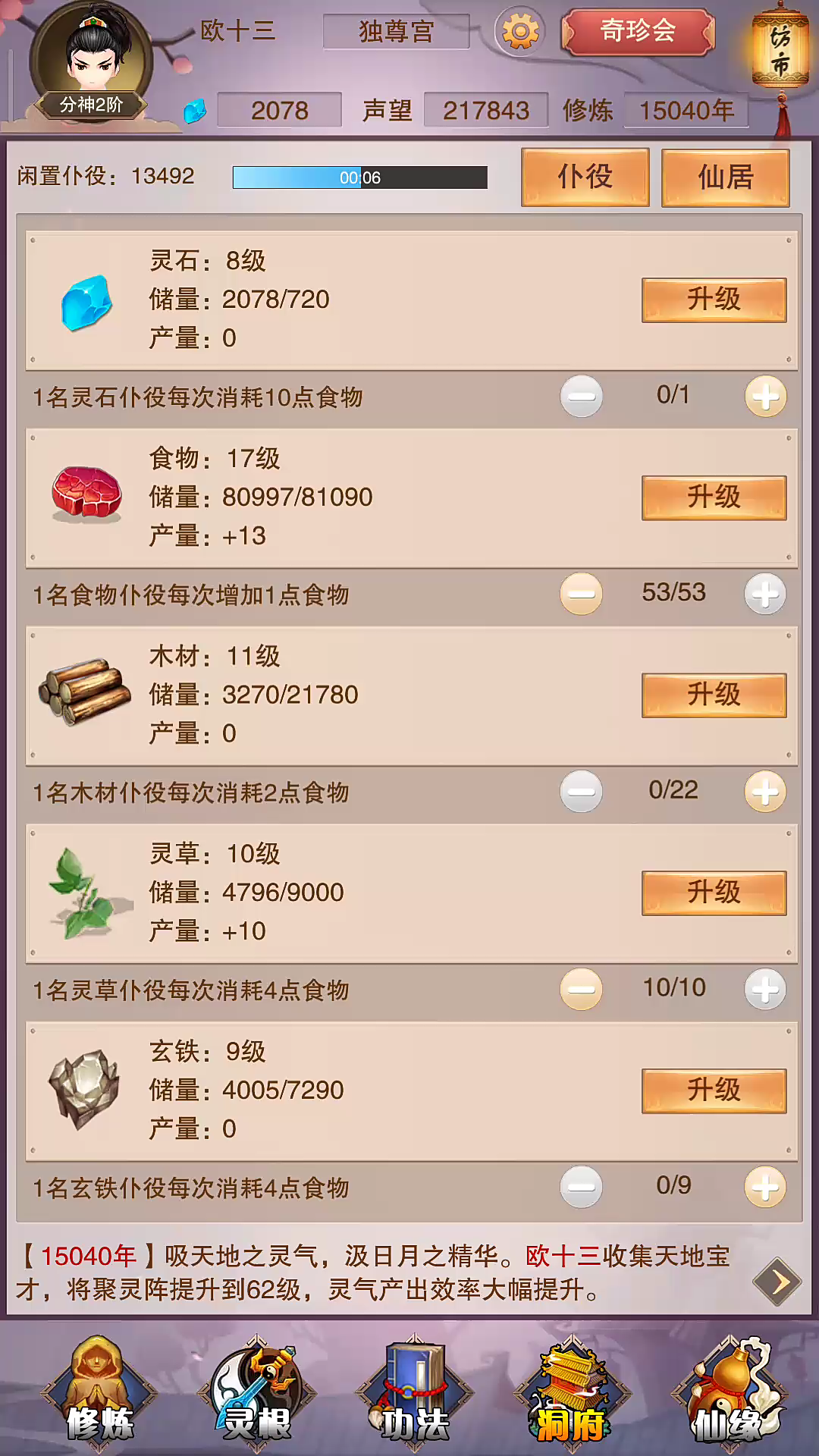 为什么聚灵阵升级了功法,属性没变化