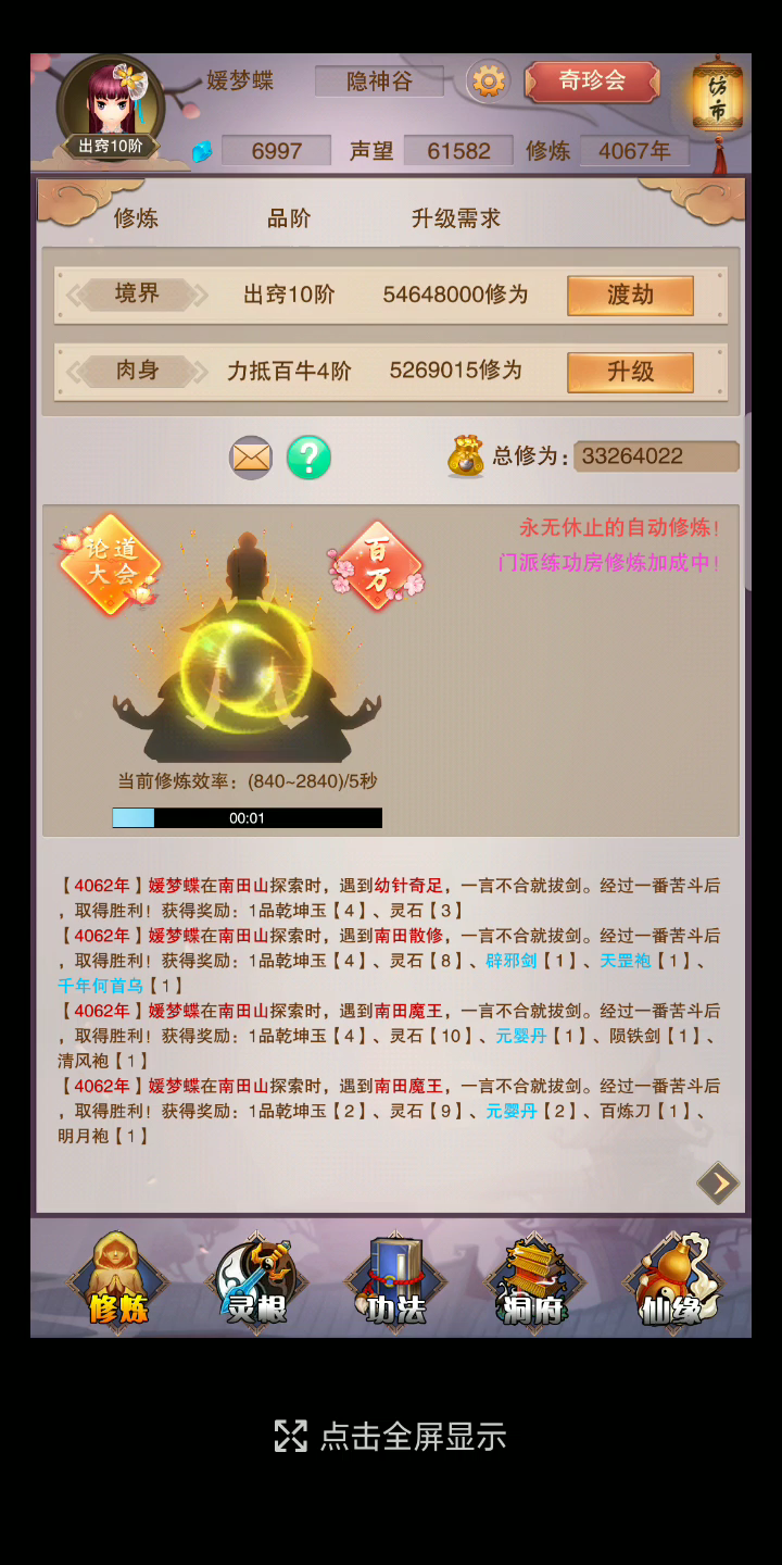疯狂给我涨修为,把我吓一跳。但是实际修为没有加那么多。