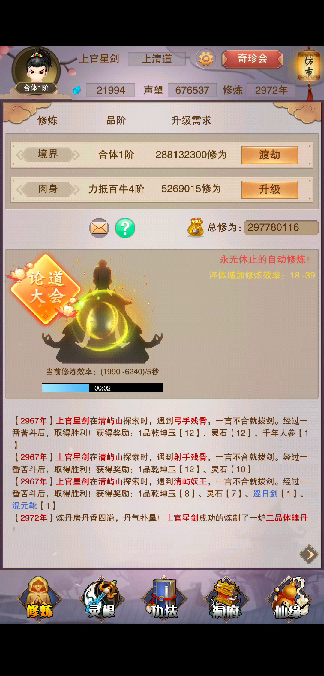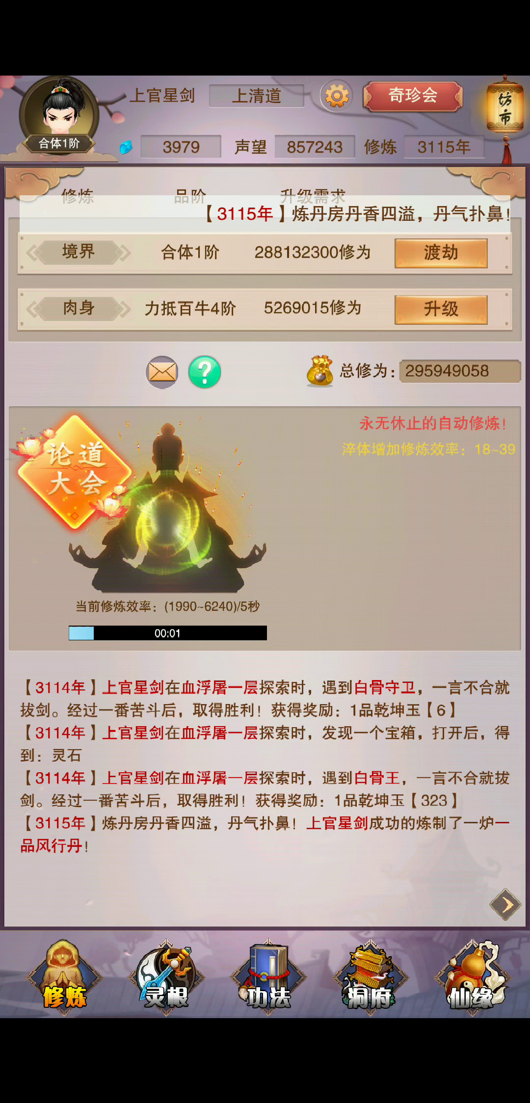 洞府的资源增加什么地方都能看到,退出游戏好几次了,盘古界。