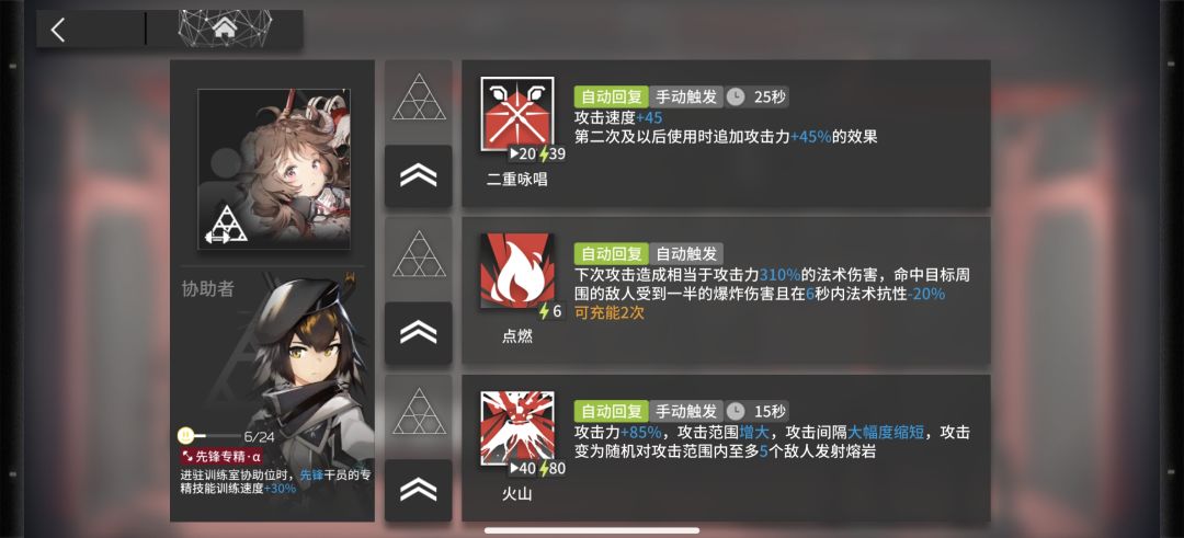 个人认为,塑心强度中上,三个技能均有一定的用处 一技能可以用来空降,快速爆条,对精英单位效果显著,但在元素爆发期间会罚站,容易被法师A掉。 二技能主要与能天使一类的高速干员配合(不是高攻),能快速爆条,对领袖单位有四两拔千斤的效果;也可以给到群攻干员身上,但不建议(因为群攻通常低攻速高攻,不合适于应对低质量怪海(还没爆条就没了),但实战中就是很容易就给到群攻,因为她是给攻击力最高的干员) 三技能主