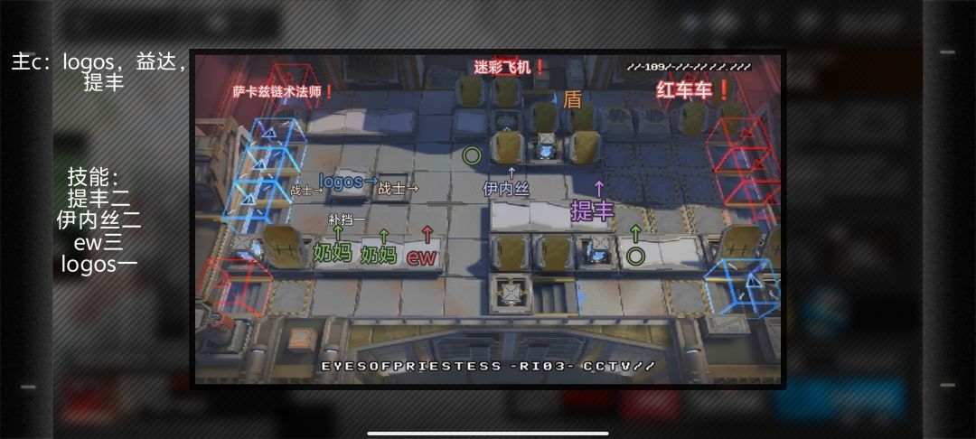 如题:战士是大范围群伤战士,如玛恩纳,龙舌兰,银灰,可补伤害 主c:logos精二60,提丰精二60,ew如果不带的话整体练度高也可以过 注:伊内丝开局打完费阵容成型后做破迷彩,如果没有伊内丝可将一技能的稀音和她的小车放在两个绿圆上做破迷彩,如果整体练度高可以无视迷彩飞机它会自己死[表情_微笑] 挡三常规盾带两个用来骗城防炮,如果有泥岩可以无视城防炮[表情_微笑] 最后五十个怪时留技能,有点猛,避