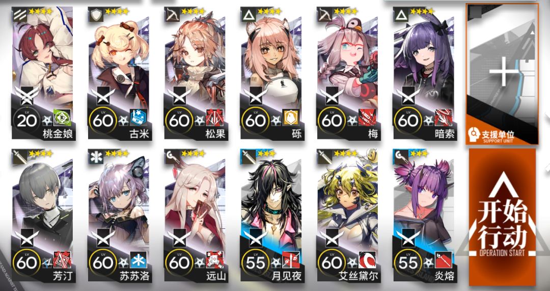 思路其实早就有了,但是至少打了4个小时才打出来。远山和炎熔简直就是最佳第六人,经常溅射到攻击范围外的影子哥,然后,,,就炸了,逼得我多次调整站位,什么疑难杂症。桃金娘不需要精二,视频中可以看到既没利用桃金娘的精二天赋,费用也是绰绰有余,不需要技能专精。 凹剿灭是真的伤,激烈手操5分钟,垃圾时间半小时。
