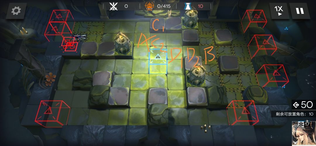 A点可以考虑重装,根据顺序调整到区域最后,附近可以随便扔个奶盾,苟住即可 B点根据配置可以考虑重装清理奇趣蛋,不过上路或者下路的奇趣蛋还是要选择清掉一路最好 C1.C2用来清理上路杂兵,爆发或者aoe能力优秀的干员最好,不过这里高台有一个暴毙点,A点重装太硬,苟的又厉害,一旦漏过飞机到边线就会挨打导致仇恨转移 D点随便选,能够清理掉B点重装正面杂兵就可以 下方小红花主要还是双快活挡一下 希望各位和