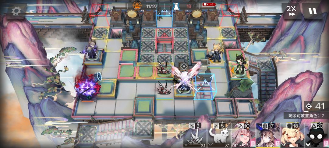 通过反复重开修建一条很长的迷宫,留出足够时间部署干员,然后就是考验干员强度的时候了。需要带迷彩的二级塔楼建筑,否则会被远程敌人击毁。 效果如下(最后还是没挡住,草莓圣代血太厚了)#攻略