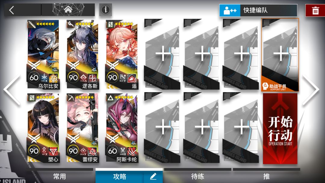 终于过了,再练习上再优化下,给大家参考下。。原谅我6星少。。叔叔是借的。号角3技能还是专一,银灰专二。BOSS放灰色的那个是看最后一个人放的,懂了这个就很好打。