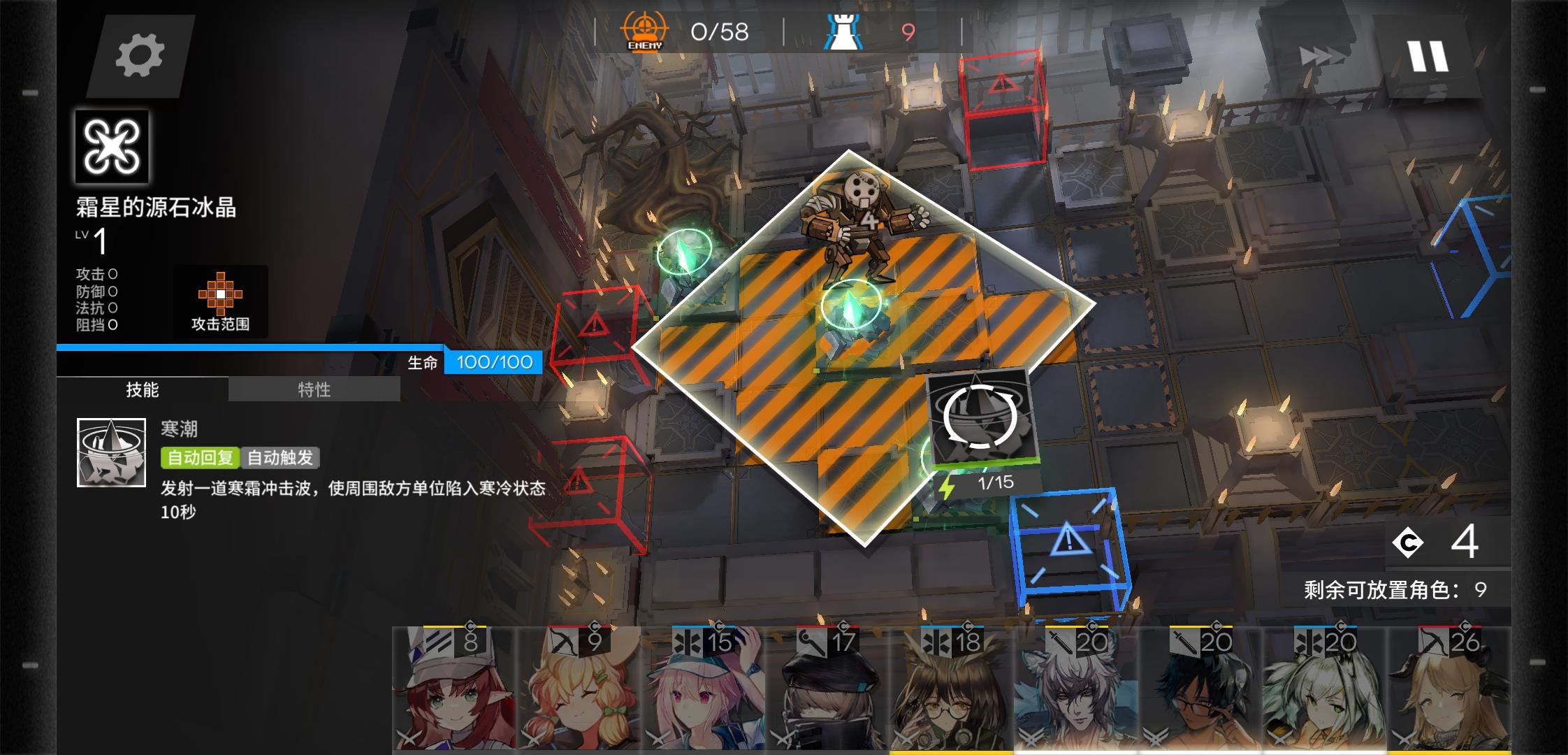 为了多萝西精二的晶体元件一路莽到9-14 打这一关学到了不少放无人机和挡怪时机的把握。能天使带的一技能,可以换成克洛丝,练度能打死开始一波的狗怪就行。其余干员理论上精一30即可,练度越高容错率越高(玫兰莎练度低的话第二次放右上角需提前) 这关恰逢时机打柱子十分重要。打柱子的思路参考了贴主“九龙湖咸鱼”的低配攻略: 低星队通第九章新主线(下) - TapTap https://www.taptap.