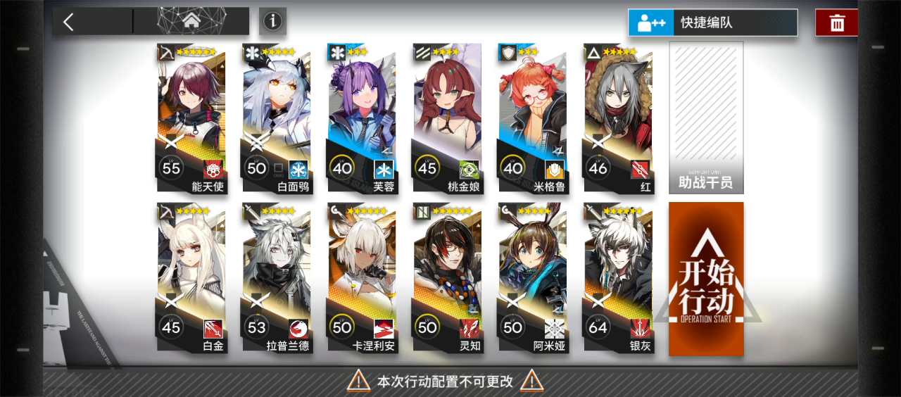 银灰负责第一波帝国先锋残血收割,最后一波术士收割,最后BOSS补刀 守林人可换成爆发输出 注意点:卡缇的格子尽量不要变黑,不然第二波会扛不住,用来挡BOSS的干员输出不要太高