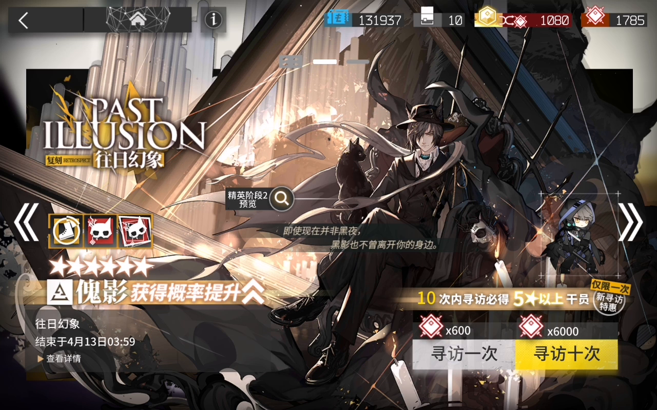小结: 六星: 伊芙利特:精二 40级 五星: 特米米:精二 20级 上周除计划外额外将傀影二技能升至专三,但依然没有抄好危机合约32,人菜没办法。想装逼想了6个赛季,始终没能如愿,第七赛季争取吧。明天的新剿灭希望能让在密室逃脱打工的傀影有机会上场亮相。(我真的很想让他高光) 本周计划: 星熊:精二 40级 五星: 格劳克斯:精一满级 另外,附一张名片,希望官服的好友加我,列表里一堆刀客塔退坑了(