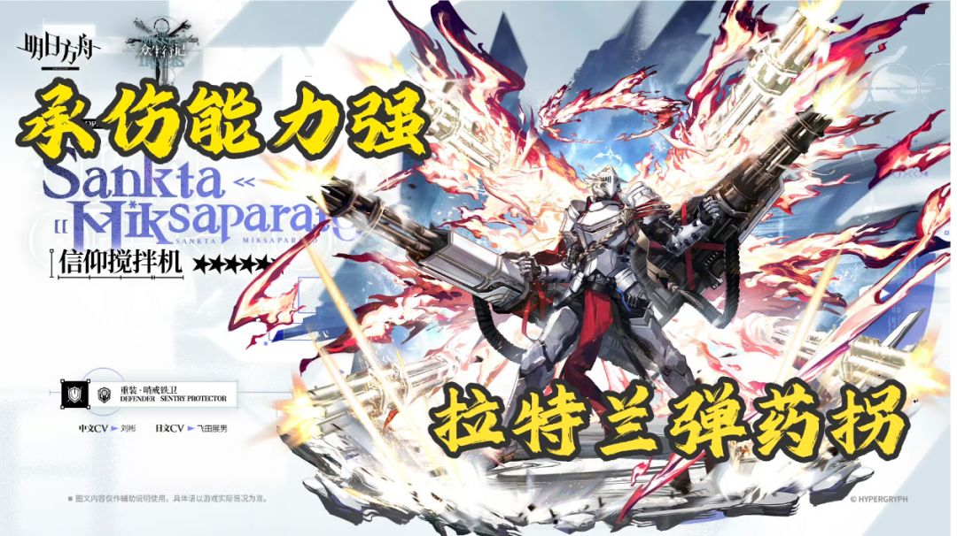 哨戒铁卫——信仰搅拌机 面板 最大血量:3957(模组 +280) 攻击:618(信赖 +60)(模组 +54) 防御:806(信赖 +60)(模组 +43) 法抗:0 费用:22(潜能-1)(潜能-1)(潜能-1) 阻挡:3 再部署时间:70(潜能-10) 攻击间隔:1.2 攻速:100 天赋 扫射迎宾仪礼:每次造成伤害使自身10秒内防御力+30,攻击速度+3,最多可叠加3层。 架盾迎宾仪礼:若