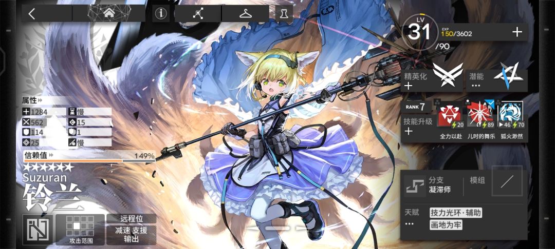 首先是附上自己的练度图。 关于铃兰的话我挺看好她,在高难或者合约上或许会有不错的表现? 接下来是关于铃兰的粗略解析。。 首先是她的天赋。 可以看出铃兰的天赋特别强力。铃兰在场时"技力光环·辅助"能使全体辅助技能更快的回转,是一座大型充电站:”画地为牢“虽然脆弱的加伤没有初雪与巫恋那般高,也只能在敌方被停顿时生效,但强在没有敌方血线的限制。然后是技能。 初始技能“全力以赴”其实表现还不赖?低技力消耗