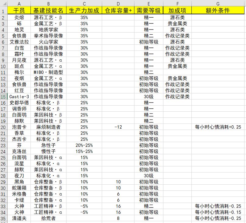 制造站的干员排行 贸易站的干员排行 加工站的干员排行 发电站的干员排行 控制中枢的干员排行 宿舍的干员排行 会客室的干员排行 人力办公室的干员排行 训练室的干员排行