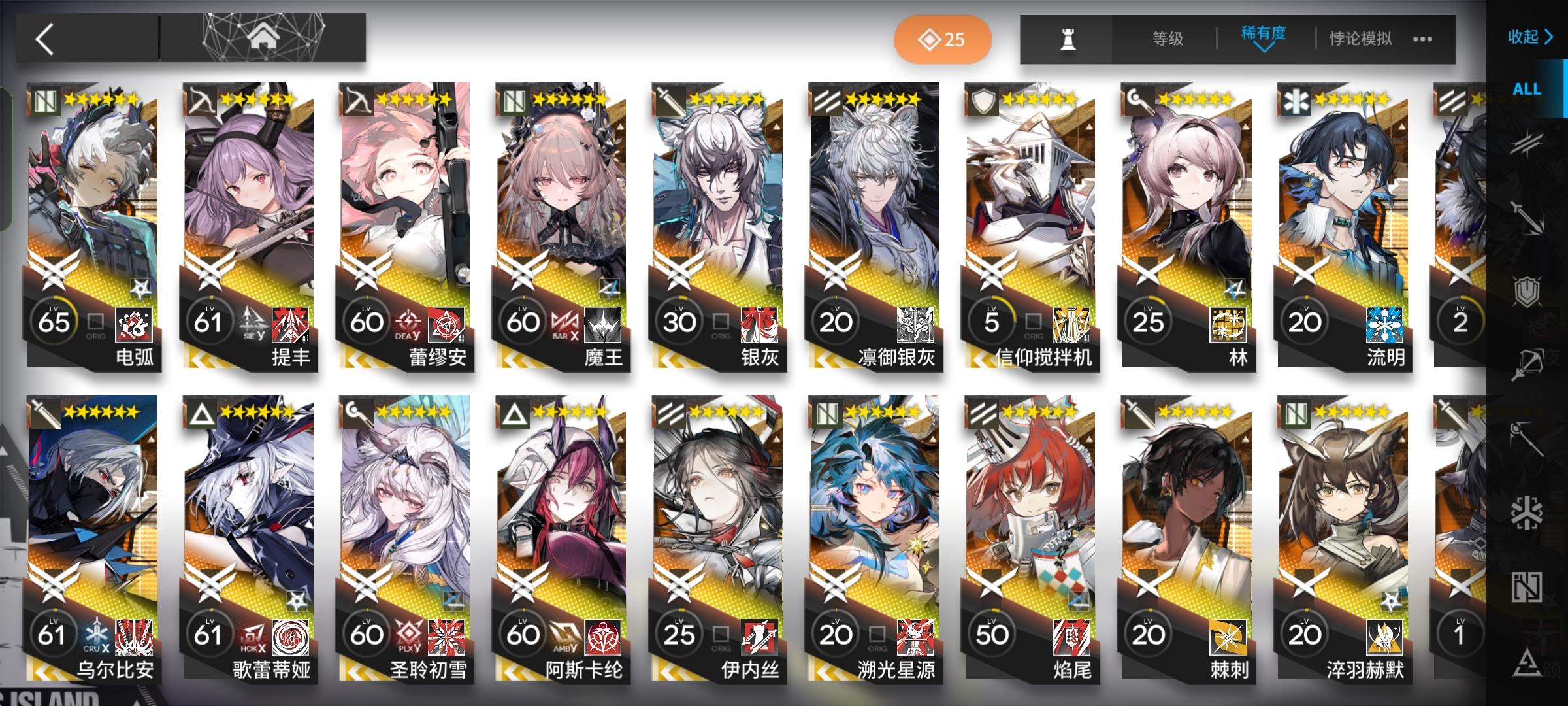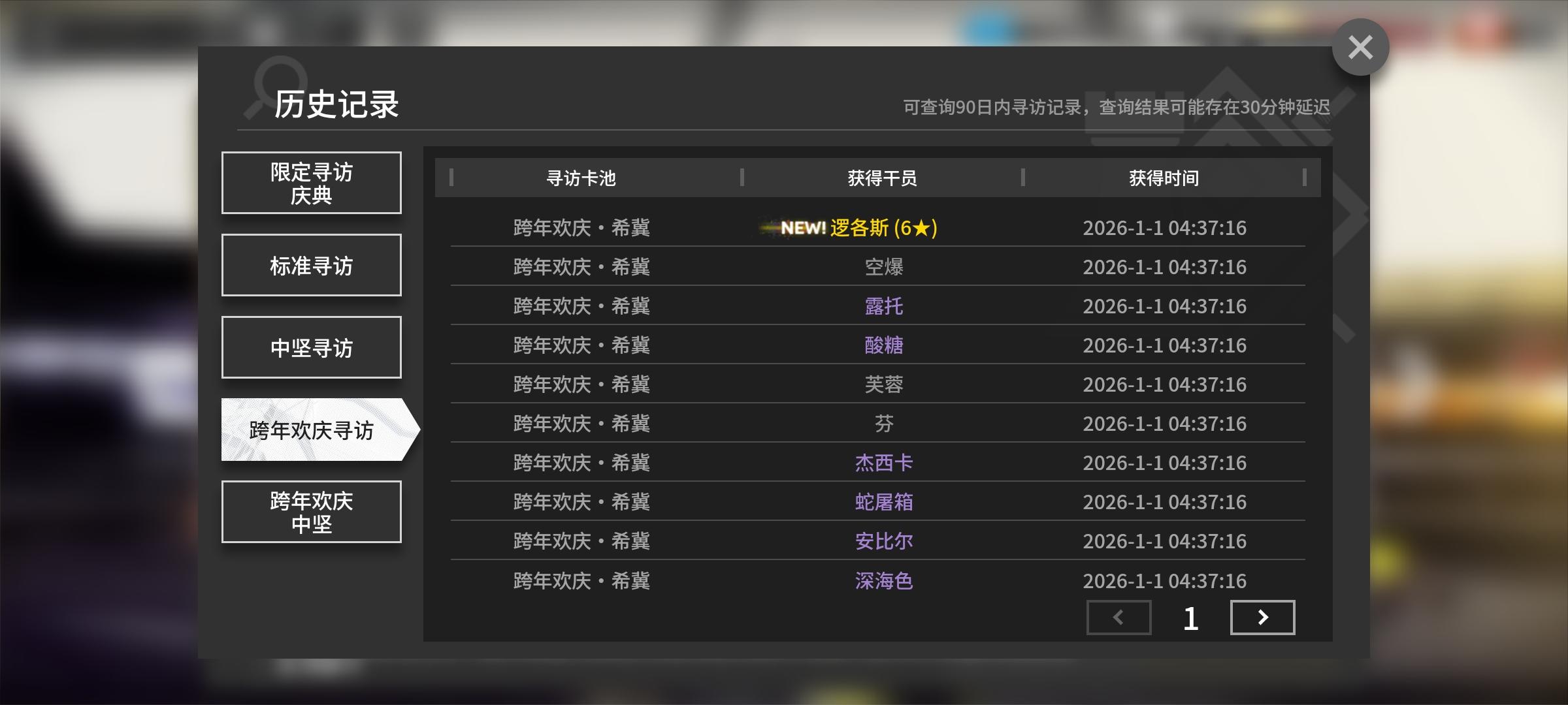 图一是我的练度,后面的不发出来是因为没有好东西了,图二跨年欢庆寻访40抽出了个逻各斯算不算运,